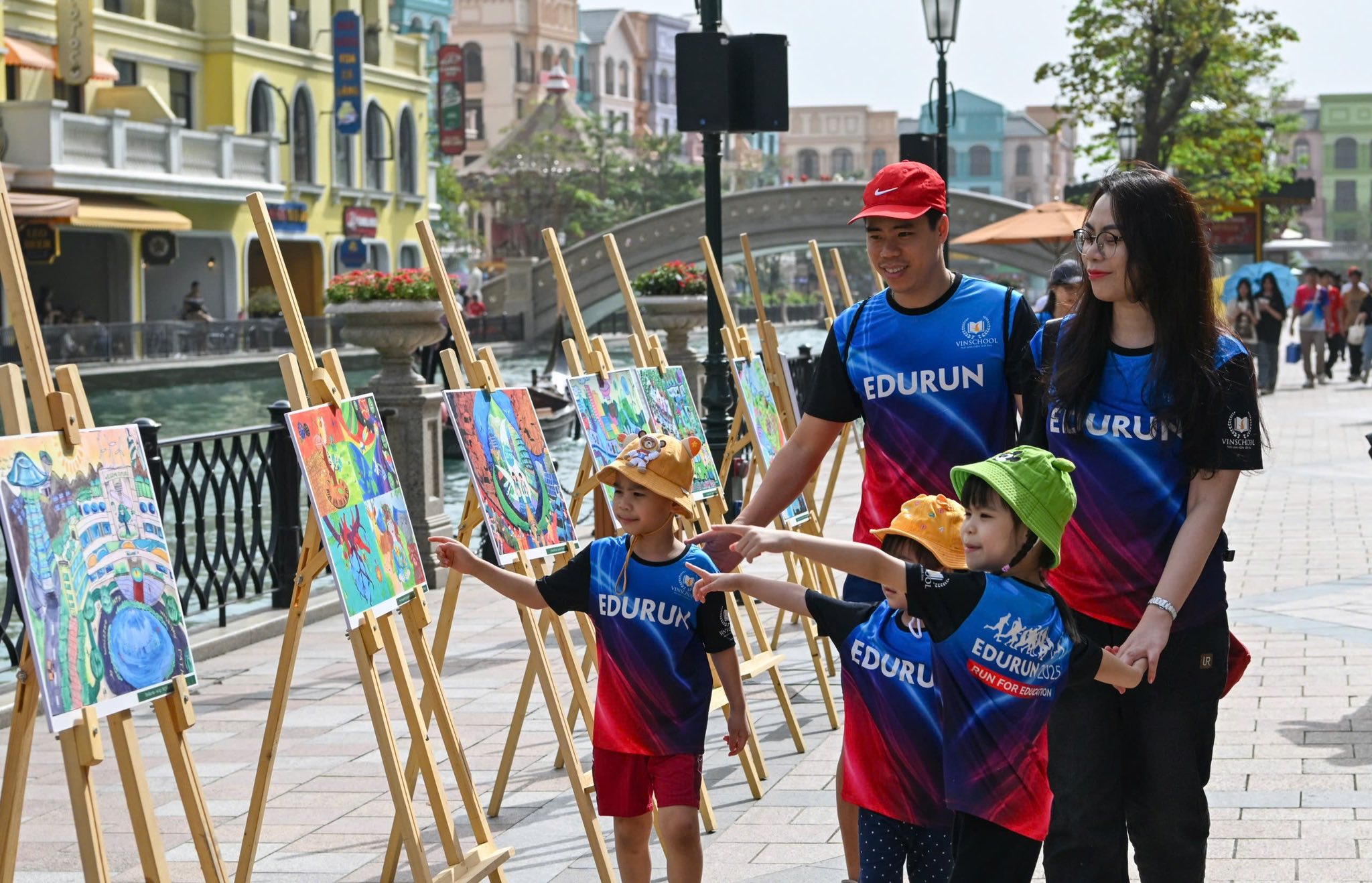 Các tác phẩm tranh vẽ từ cuộc thi “Gửi Tương Lai Xanh 2050” mùa 1 được giới thiệu trưng bày tại sự kiện “Ngày Hội Xanh 2025” do Vingroup tổ chức vào tháng 3/2025. Ảnh: QVTLX.