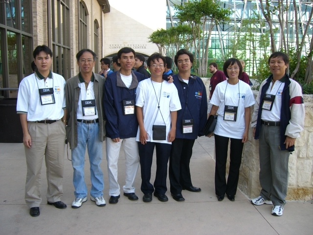 Đoàn Việt Nam tham dự ACM-ICPC World Finals 2006 (từ trái sang phải) gồm thầy Bùi Thế Duy, bác Nguyễn Long, anh Nguyễn Tường Quân, anh Phạm Hữu Ngôn, anh Nguyễn Đan Thanh, cô Nguyễn Ngô Bảo Trân, thầy Dương Anh Đức.
