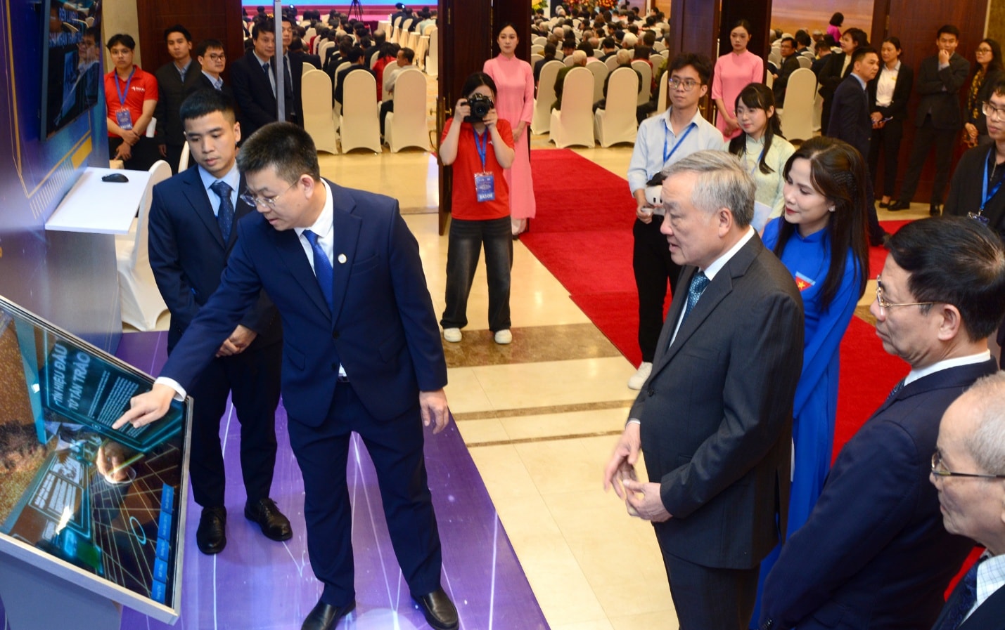 Phó Thủ tướng Thường trực Chính phủ Nguyễn Hòa Bình và các đại biểu tham quan triển lãm truyền thống lịch sử và các ứng dụng công nghệ mới của Cục BĐTƯ tại Lễ kỷ niệm. (Ảnh: Mạnh Vỹ).