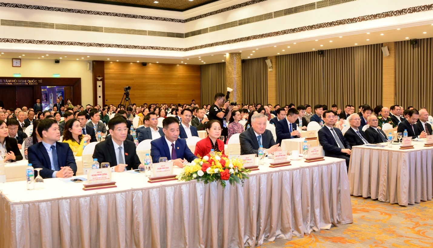 Phó Thủ tướng Thường trực Chính phủ Nguyễn Hòa Bình, Bộ trưởng Nguyễn Mạnh Hùng chụp ảnh lưu niệm cùng các đại biểu. Ảnh: Mạnh Vỹ.