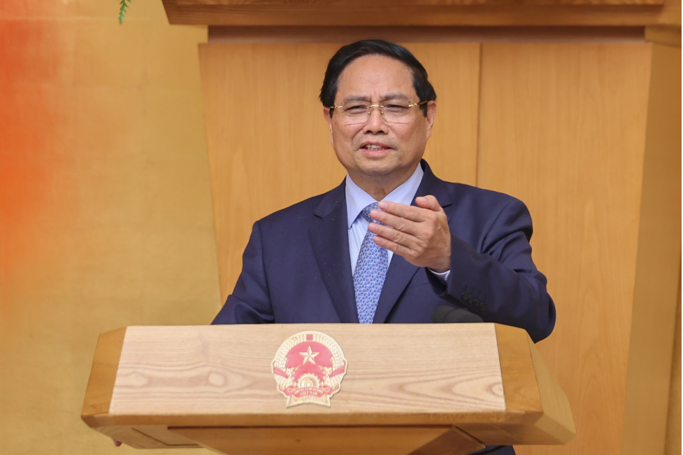 Thủ tướng Chính phủ Phạm Minh Chính chủ trì Phiên họp đánh giá tình hình thực hiện và tháo gỡ khó khăn sau 3 tháng thực hiện mô hình chính quyền địa phương 2 cấp (Ảnh: VGP).