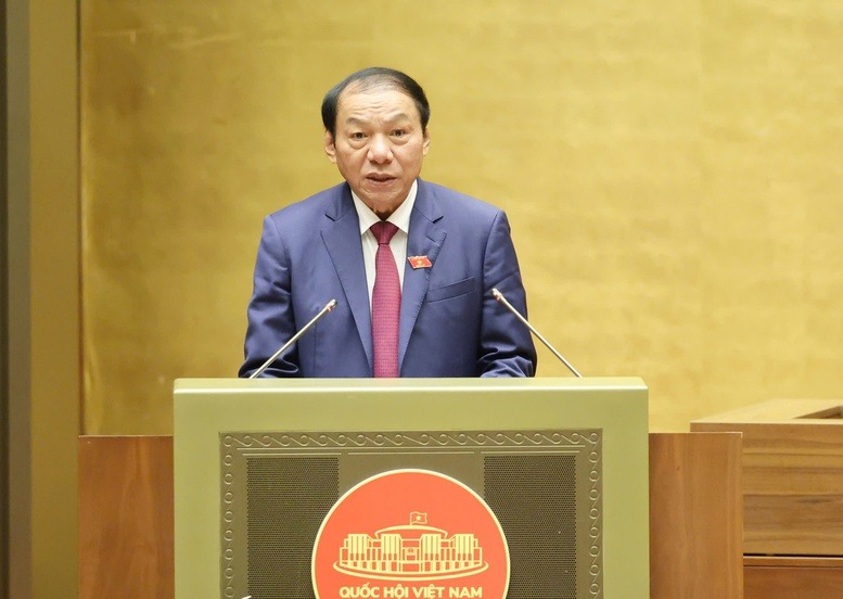Thừa ủy quyền của Thủ tướng Chính phủ, Bộ trưởng Bộ Văn hóa, Thể thao và Du lịch Nguyễn Văn Hùng trình bày Tờ trình dự án Luật Báo chí (sửa đổi).
