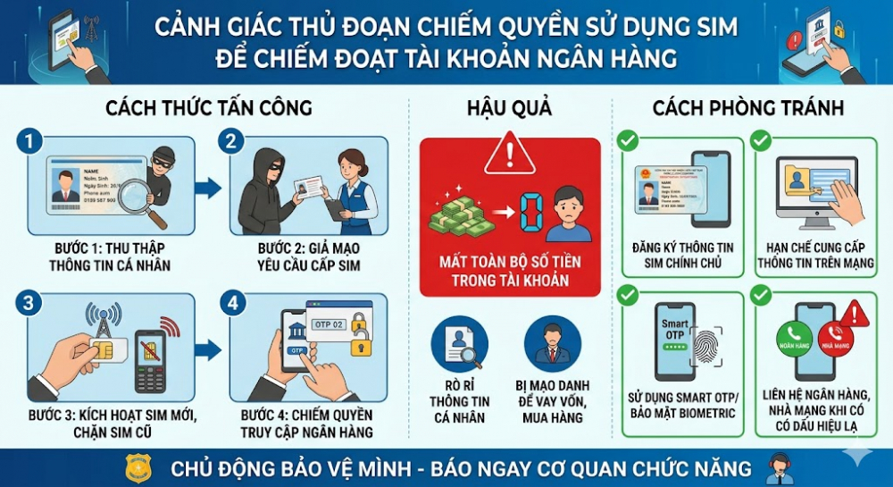 Cảnh giác thủ đoạn chiếm quyền sử dụng SIM để đánh cắp tiền tài khoản ngân hàng