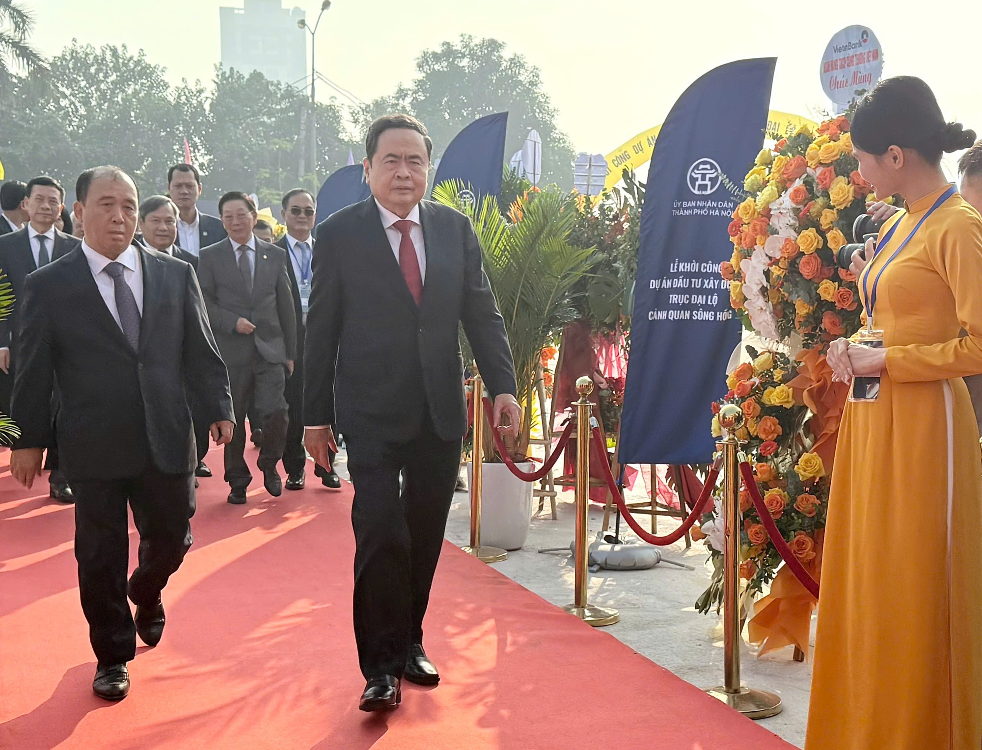 Chủ tịch Quốc hội Trần Thanh Mẫn tới dự lễ khởi công dự án đầu tư xây dựng trục đại lộ cảnh quan sông Hồng - Ảnh: VGP/HT