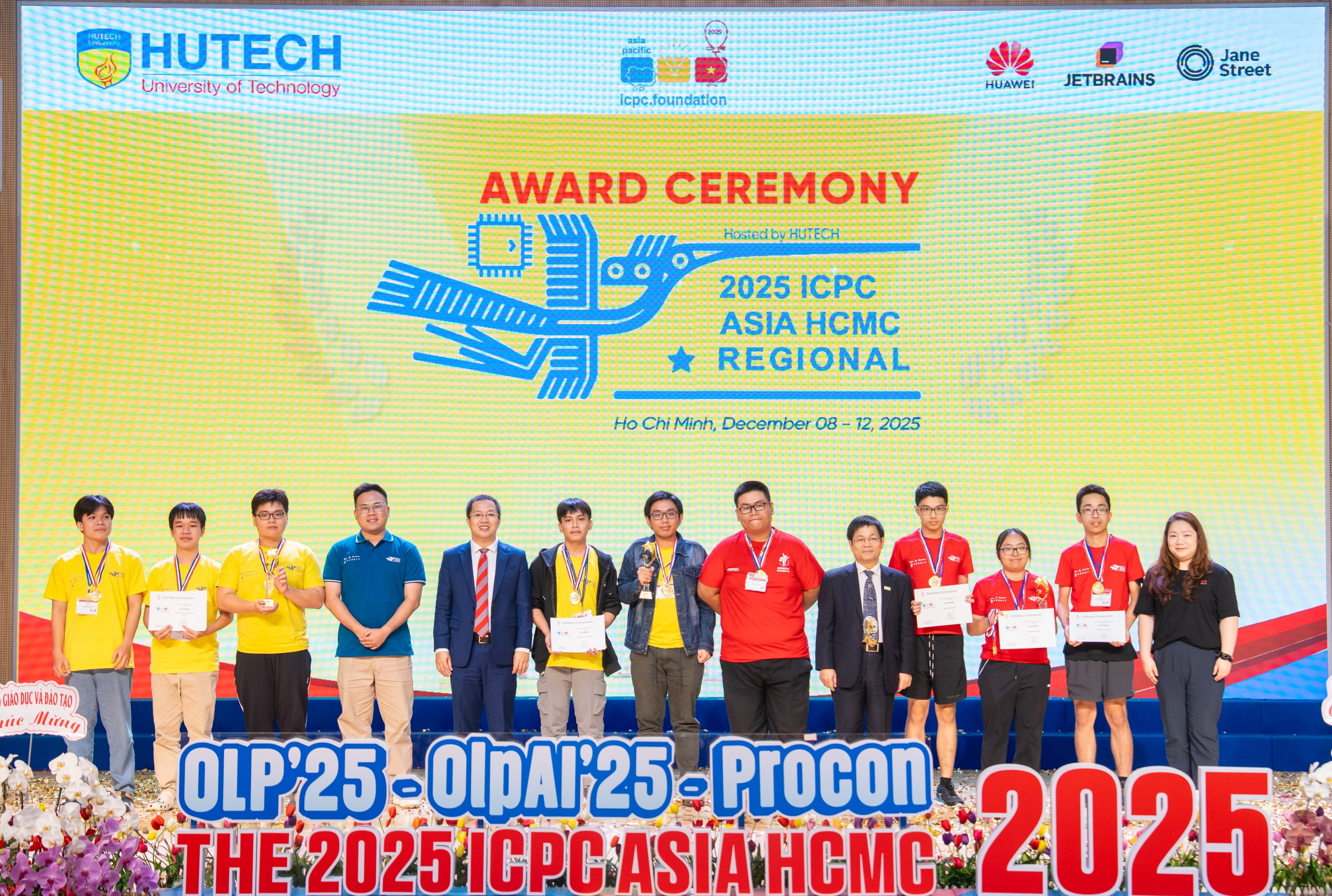 Lê Kiến Thành cùng đội HCMUS-ThaiFamily (ngoài cùng bên trái) giành huy chương Vàng tại ICPC Asia HoChiMinh City 2025.