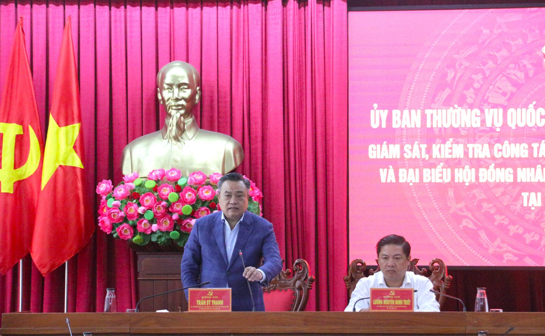 Ông Trần Sỹ Thanh, Ủy viên Bộ Chính trị, Bí thư Trung ương Đảng, Chủ nhiệm Ủy ban Kiểm tra Trung ương, Ủy viên Hội đồng bầu cử Quốc gia phát biểu tại buổi làm việc.