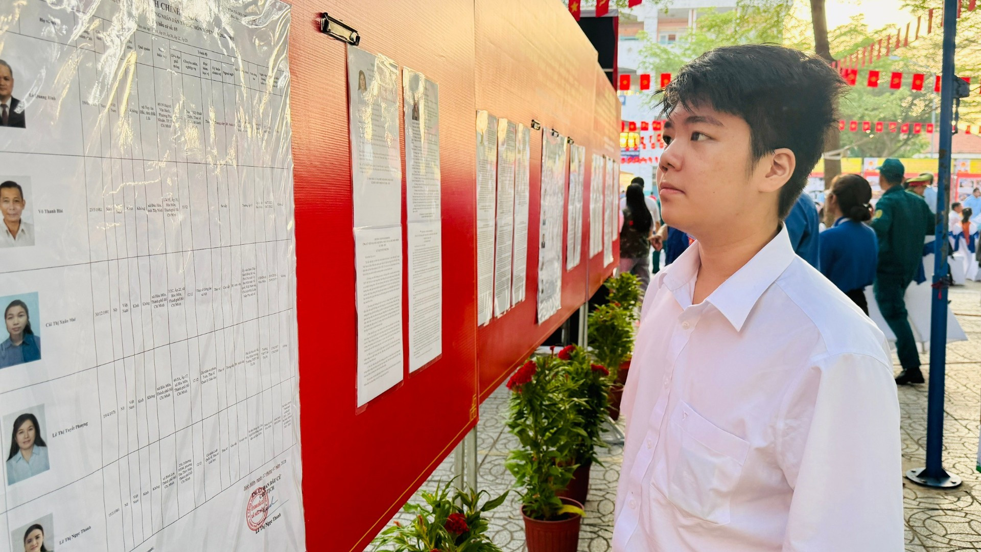 Cử tri trẻ Dương Minh Triết xem lại danh sách các ứng cử viên trước khi thực hiện bỏ phiếu.