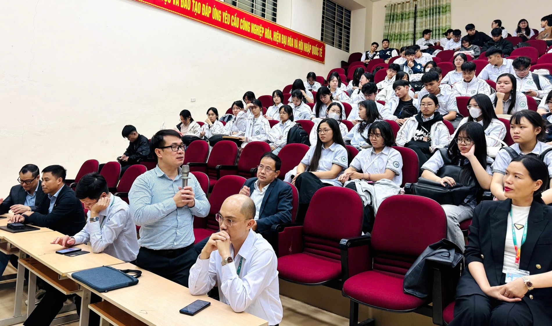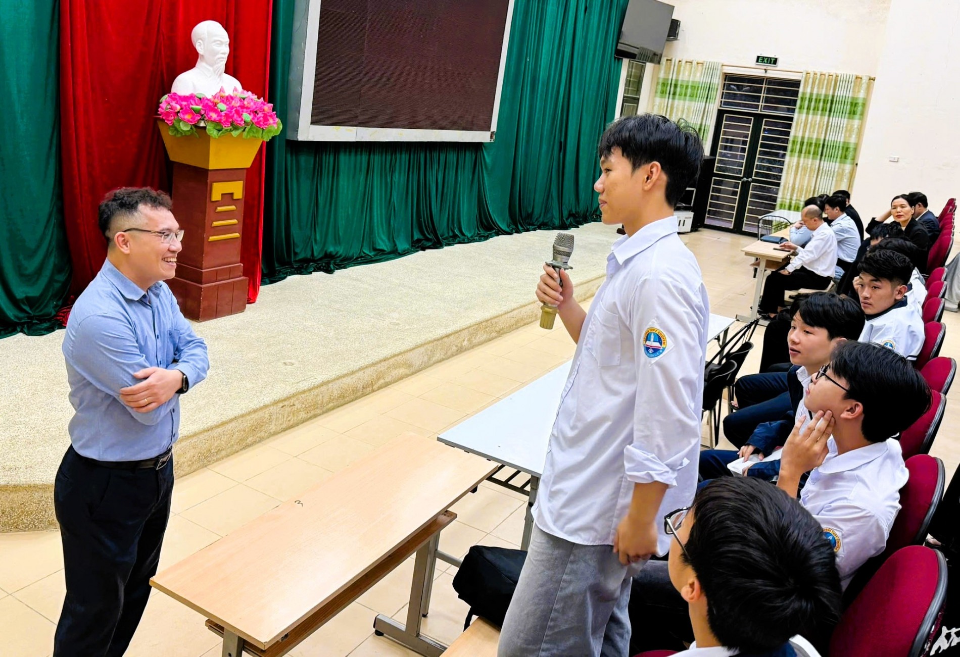 TS. Hà Mạnh Tuấn - Phó Trưởng Ban Tuyển sinh - Hướng nghiệp, ĐHBK Hà Nội - lắng nghe và giải đáp các thắc mắc của học sinh.