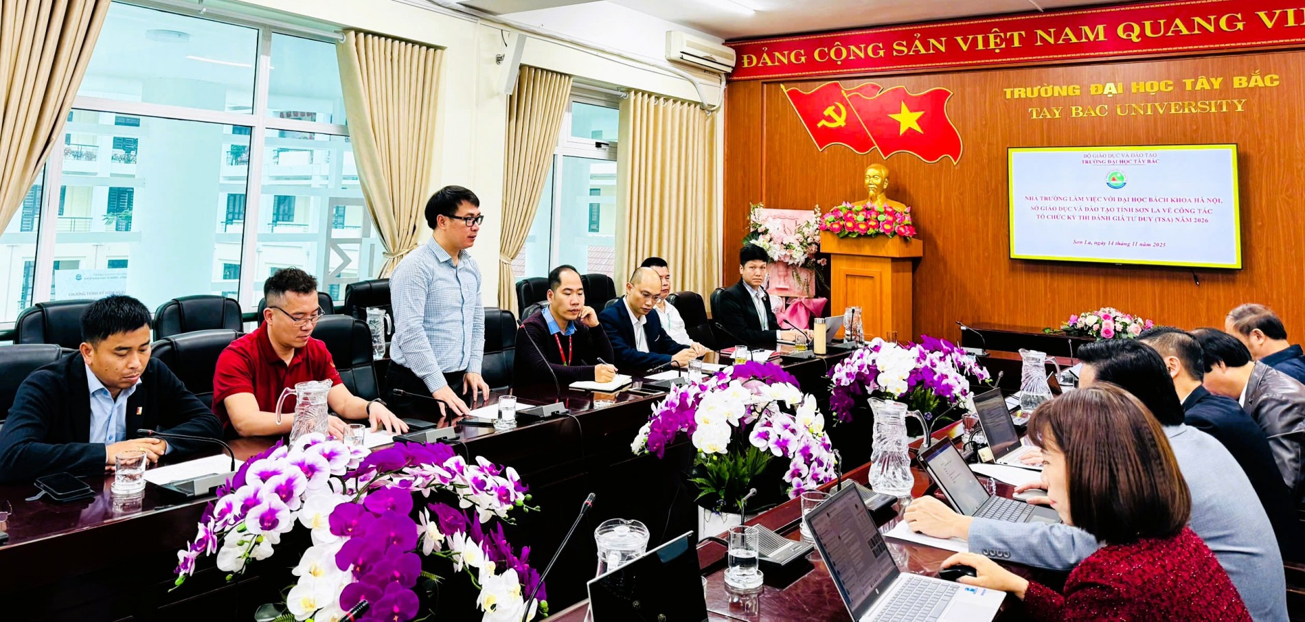 Một buổi sáng giữa tháng 11, đường từ Đại học Bách khoa Hà Nội lên Trường Đại học Tây Bắc phủ một lớp sương mỏng. Trong không khí se lạnh ấy, đoàn công tác Đại học Bách khoa Hà Nội xuất phát từ rất sớm với một mục tiêu rõ ràng: Thực hiện khảo sát để có thể tổ chức bài thi Đánh giá tư duy (TSA) cho các em học sinh khu vực Tây Bắc.