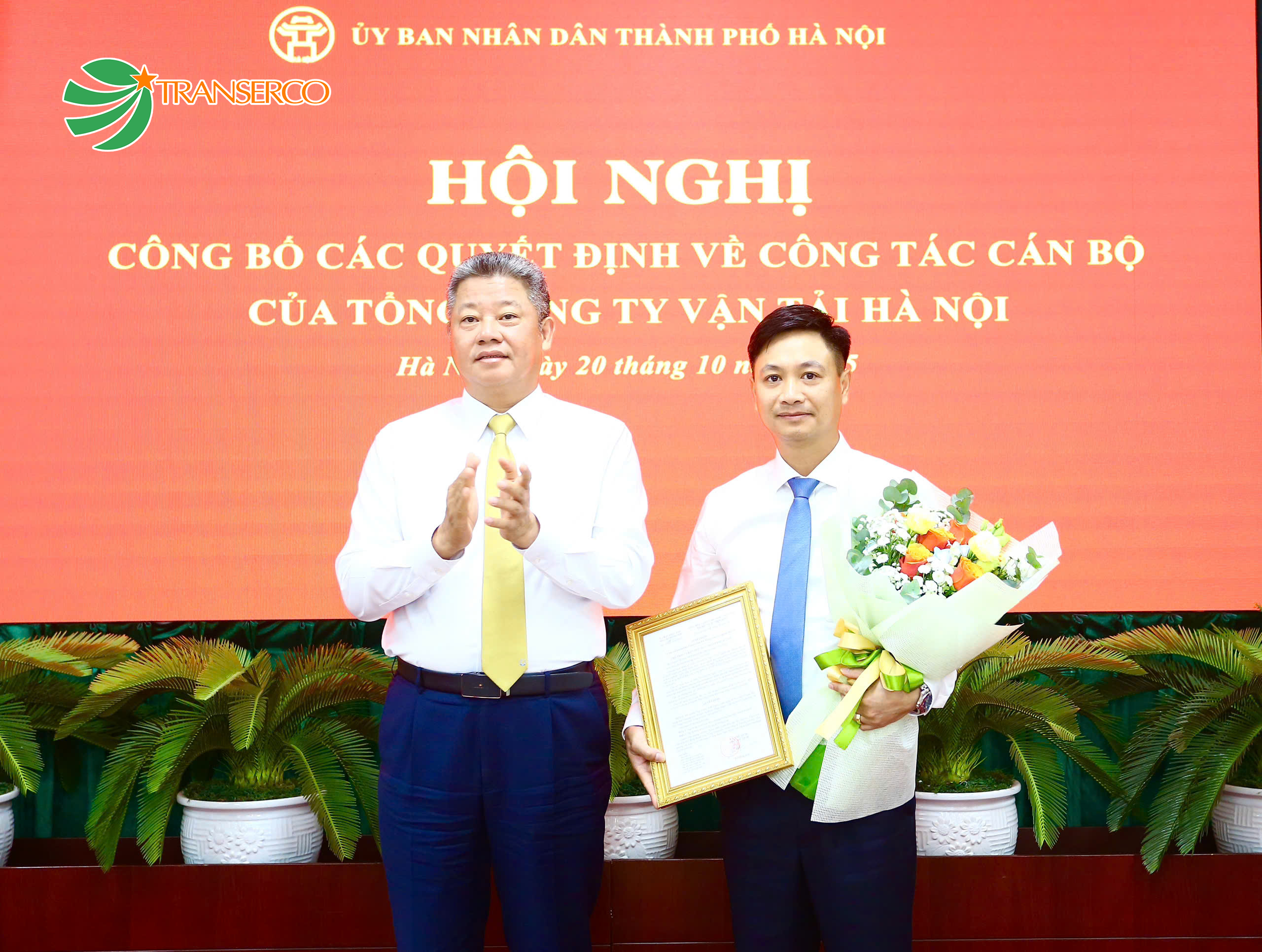 Thay mặt lãnh đạo Thành phố, đồng chí Nguyễn Mạnh Quyền - Ủy viên Ban Thường vụ Thành ủy, Phó Chủ tịch UBND Thành phố đã trao Quyết định của UBND Thành phố Hà Nội về việc bổ nhiệm đồng chí Nguyễn Thủy (sinh năm 1977) - Uỷ viên BTV Đảng uỷ, Phó Tổng giám đốc Tổng công ty giữ chức vụ Thành viên Hội đồng thành viên (HĐTV) Tổng công ty Vận tải Hà Nội và quyết định bổ nhiệm đồng chí Đoàn Anh Ngọc (sinh năm 1985), Giám đốc Trung tâm Thương mại và Dịch vụ thuộc Tổng công ty giữ chức vụ Phó Tổng giám đốc Tổng công ty Vận tải Hà Nội. Thời hạn bổ nhiệm cho từng chức danh là 5 năm.