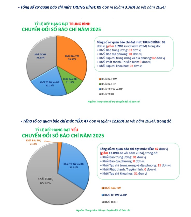 - Tổng số cơ quan báo chí đạt mức độ trưởng thành chuyển đổi số báo chí năm 2025: