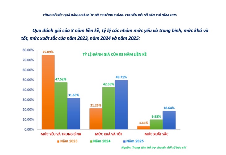 CÔNG BỐ KẾT QUẢ ĐÁNH GIÁ, ĐO LƯỜNG MỨC ĐỘ TRƯỞNG THÀNH CHUYỂN ĐỔI SỐ BÁO CHÍ NĂM 2025: