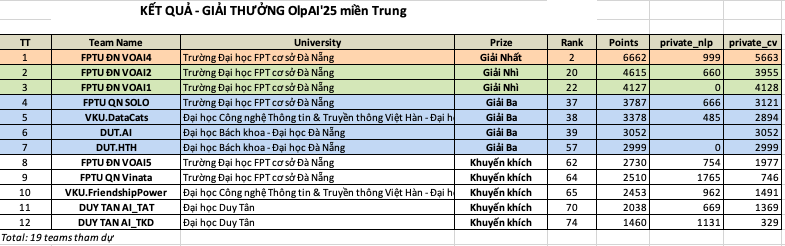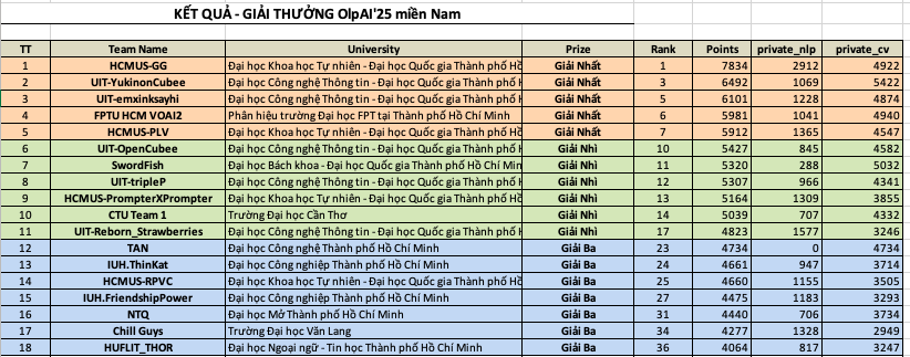Công bố kết quả Olympic Trí tuệ nhân tạo Sinh viên Việt Nam 2025 - OlpAI’25 ba miền Bắc - Trung - Nam