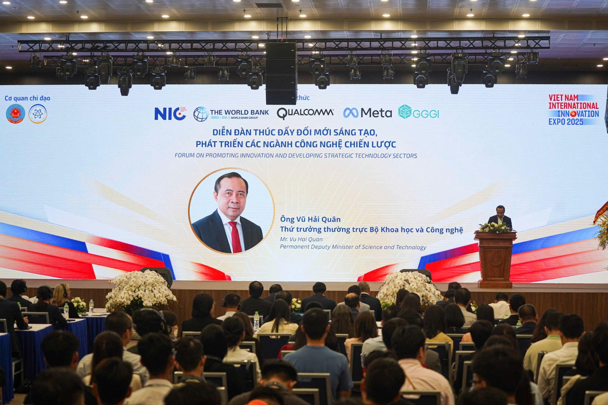 Chiều 2/10, trong khuôn khổ Ngày hội Đổi mới sáng tạo Quốc gia và Triển lãm quốc tế Đổi mới sáng tạo Việt Nam 2025, Trung tâm Đổi mới sáng tạo Quốc gia (NIC) đã phối hợp với Ngân hàng Thế giới (World Bank) cùng các tập đoàn Qualcomm, Meta và Viện Tăng trưởng xanh toàn cầu (GGGI) tại Việt Nam tổ chức Diễn đàn “Thúc đẩy đổi mới sáng tạo, phát triển các ngành công nghệ chiến lược”.