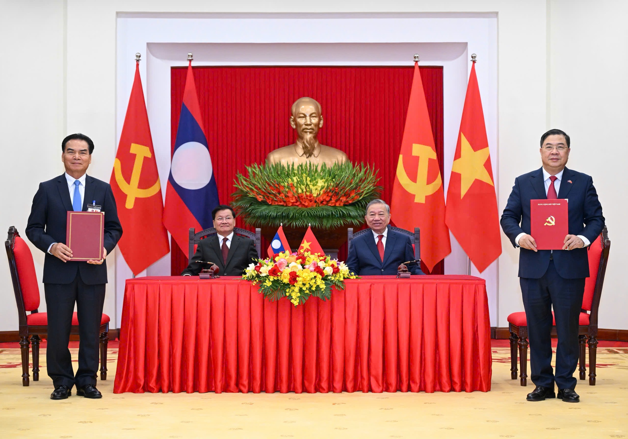 Nhân dịp này, Tổng Bí thư, Chủ tịch nước Lào Thongloun Sisoulith đã trân trọng mời Tổng Bí thư Tô Lâm sớm thăm lại Lào. Tổng Bí thư Tô Lâm đã vui vẻ nhận lời.