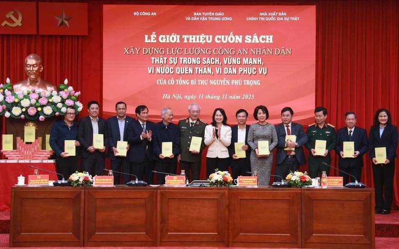 Chiều 11/11/2025, tại Hà Nội, Nhà xuất bản Chính trị quốc gia Sự thật phối hợp với Bộ Công an tổ chức Lễ giới thiệu cuốn sách "Xây dựng lực lượng Công an nhân dân thực sự trong sạch, vững mạnh, vì nước quên thân, vì dân phục vụ" của cố Tổng Bí thư Nguyễn Phú Trọng.