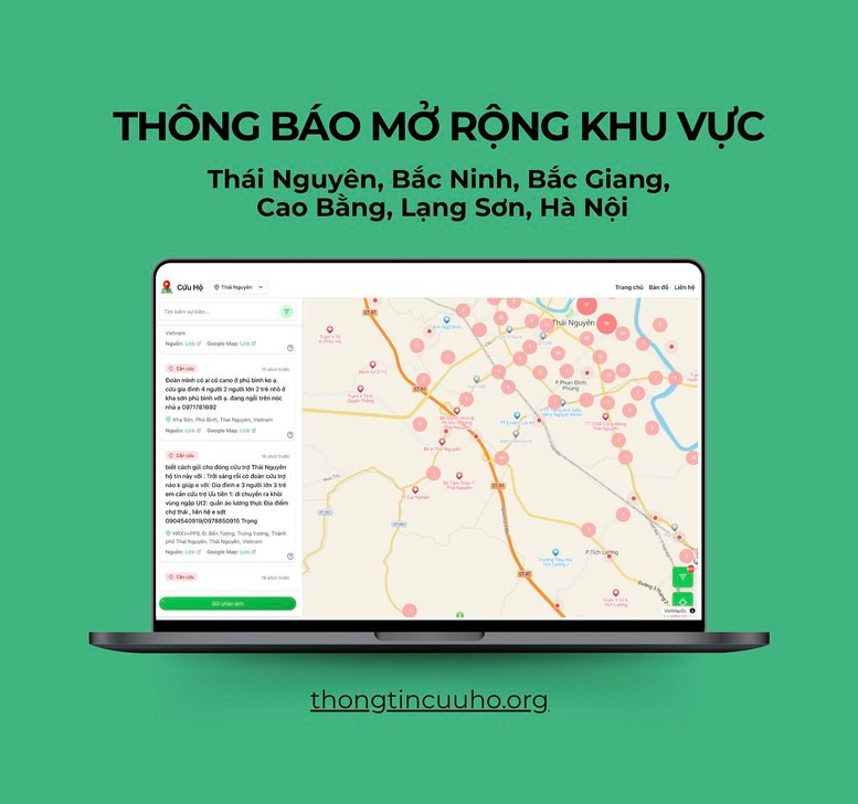 Nền tảng đang tiếp tục cập nhật thêm thông tin cần cứu trợ của các địa phương chịu thiệt hại bởi bão lũ như: Bắc Giang, Lạng Sơn, Bắc Ninh, Cao Bằng, Hà Nội.