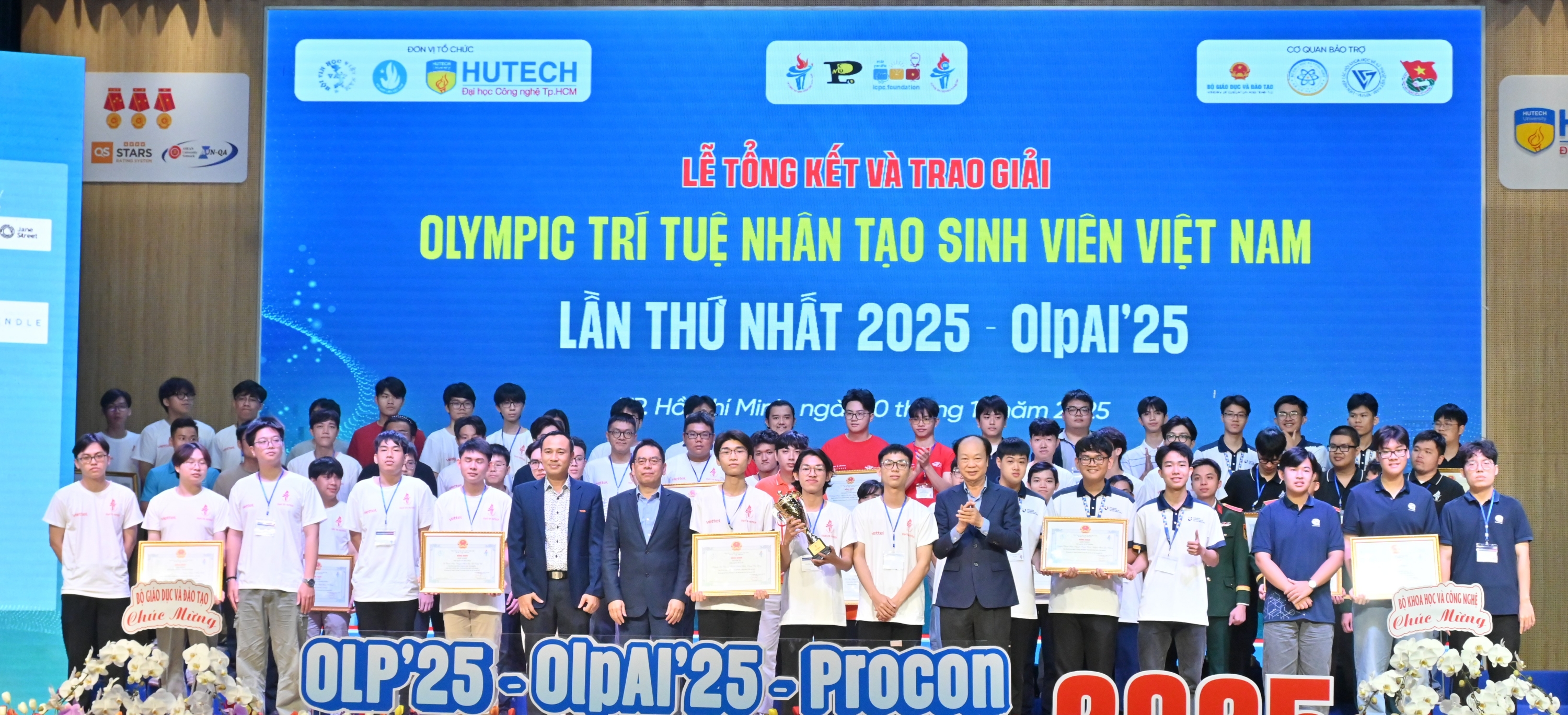Giải Nhất OlpAI’25 thuộc về đội: HCMUS-PLV - Trường Đại học KHTN - Đại học KHTN – ĐHQG-HCM; đội IUH.ThinKat - Trường Đại học Công nghiệp TP HCM; đội UIT-OpenCubee - Trường Đại học CNTT – ĐHQG-HCM và ThunderChamp - Học viện Công nghệ Bưu chính Viễn thông - Hà Nội.