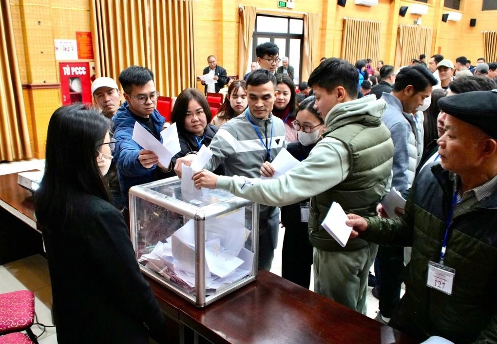 Khách tham gia bỏ phiếu đấu giá đất (Ảnh: UBND xã Tây Phương).