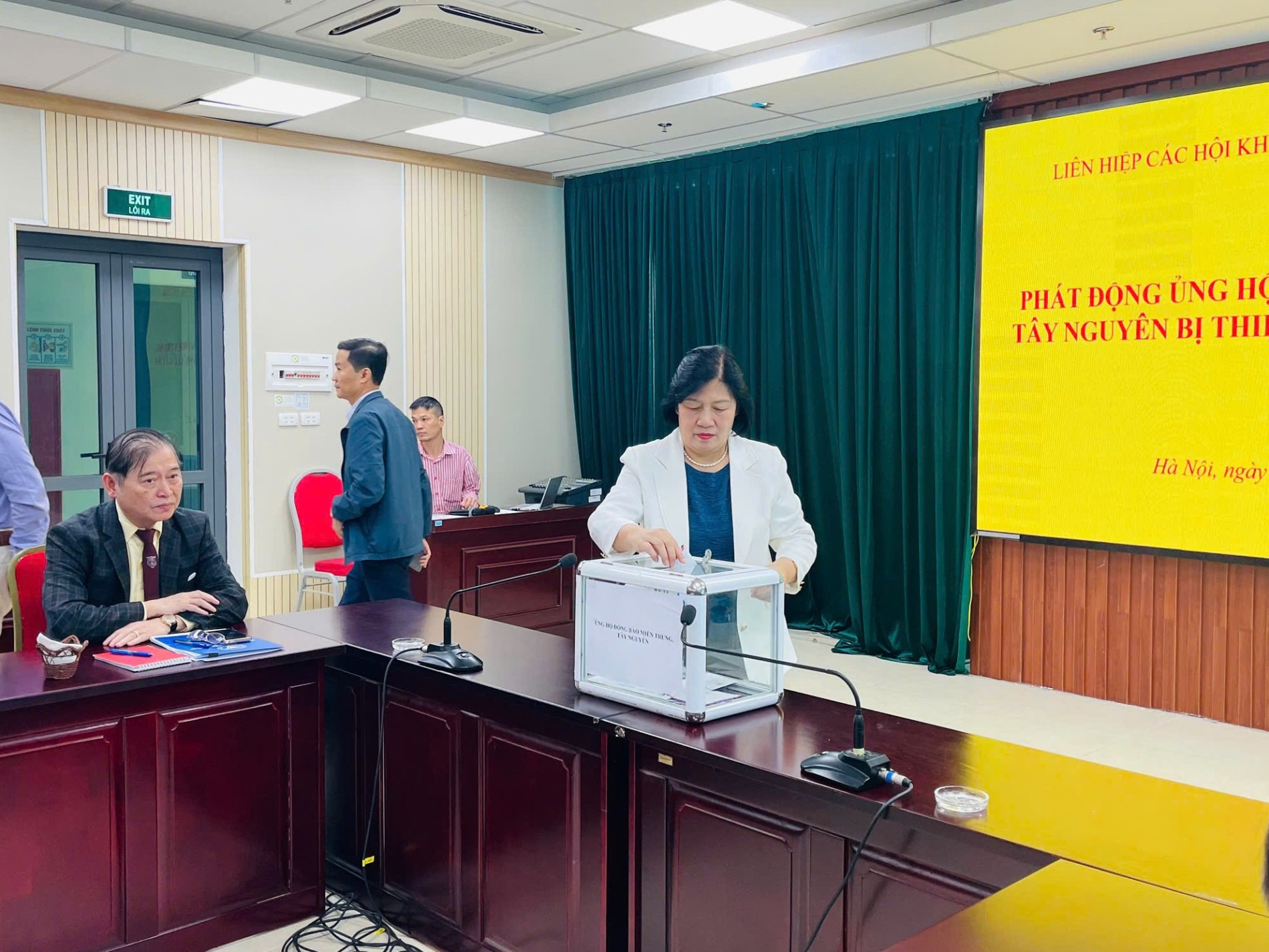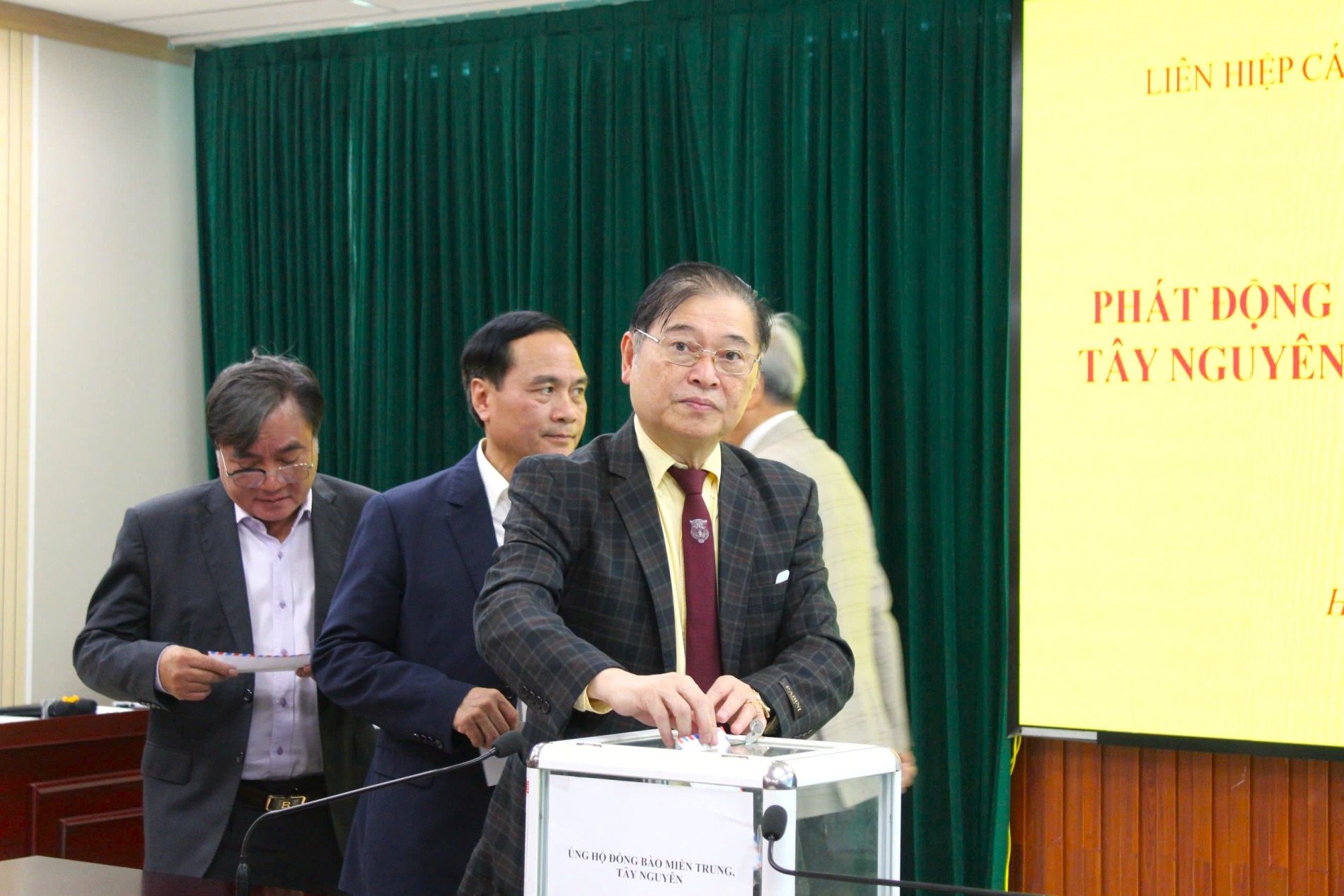 Các đồng chí Thường trực Đoàn Chủ tịch Liên hiệp Hội Việt Nam tham gia ủng hộ tại Lễ phát động.