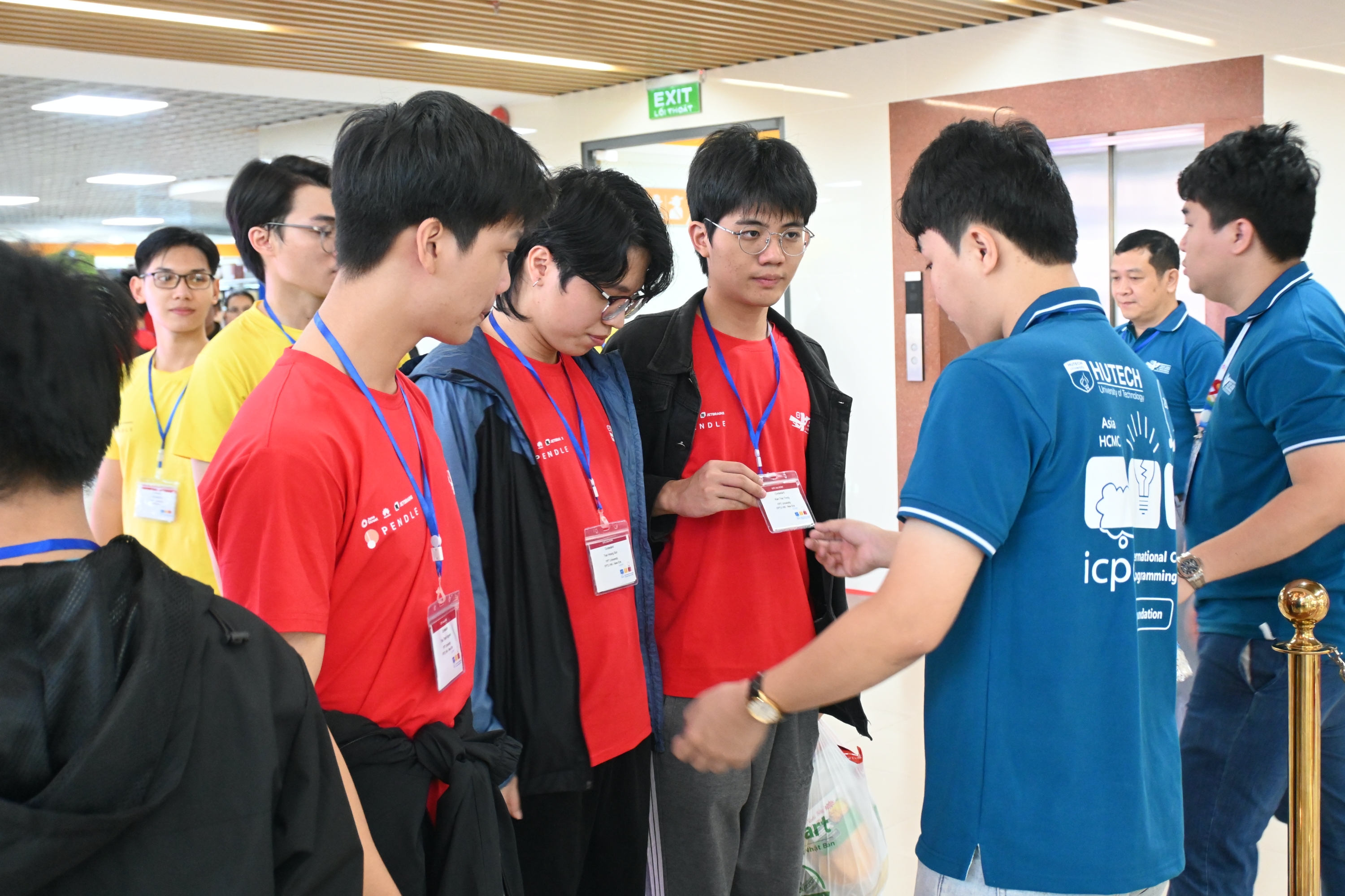 Từ 7h30 sáng, các thí sinh đã có mặt tại phòng thi để hoàn tất thủ tục, kiểm tra thẻ và thông tin cá nhân theo quy định. Các đội sẽ có 5 tiếng làm bài, từ 8h40 đến 13h40, để chinh phục bộ đề gồm 13 bài toán thuật toán với độ khó tăng dần.