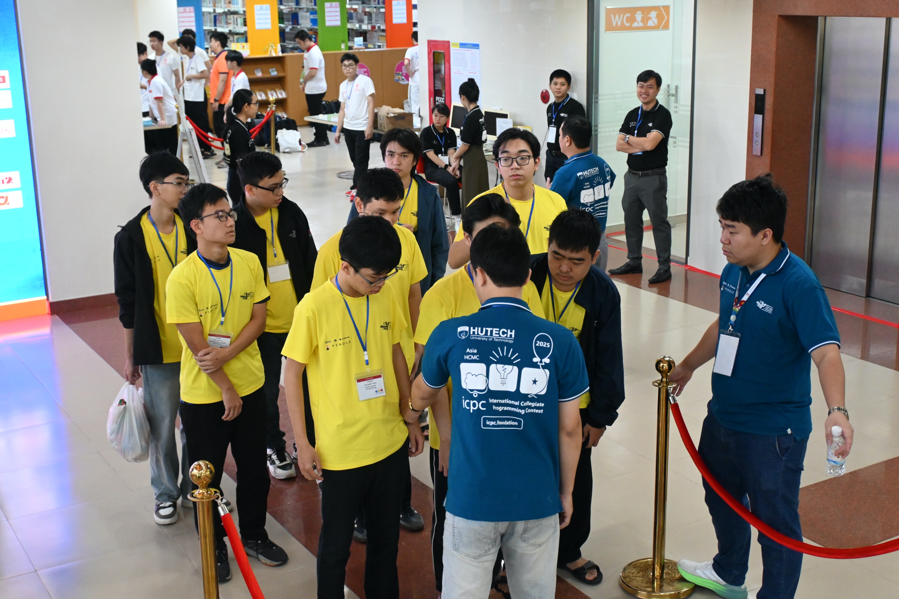 Đúng 8h40 phút, Kỳ thi ICPC Asia HoChiMinh City 2025 chính thức bắt đầu. Kỳ thi năm nay quy tụ 129 đội tuyển (387 sinh viên) cùng hơn 100 giảng viên, huấn luyện viên đến từ 62 trường đại học, cao đẳng và học viện trong nước, cùng 18 đội quốc tế (54 sinh viên) đến từ 6 quốc gia: Hàn Quốc, Đài Loan, Malaysia, Singapore, Indonesia và Thái Lan.