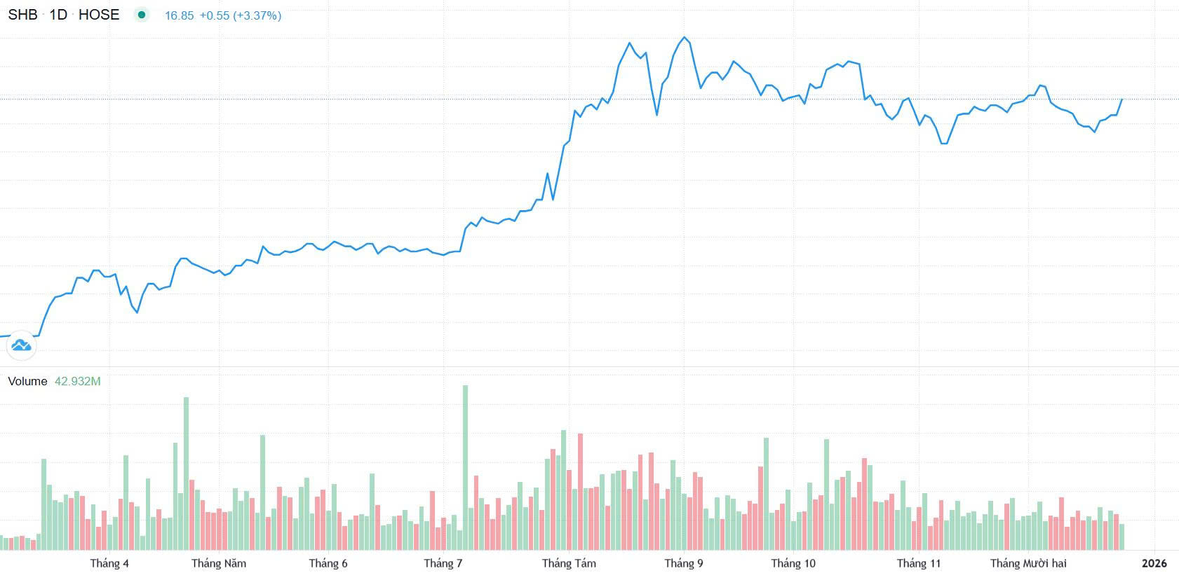 Trên thị trường chứng khoán, cổ phiếu SHB đã tăng gấp đôi giá trị từ đầu năm đến nay, thuộc top cổ phiếu ngân hàng tăng trưởng mạnh nhất giai đoạn này. Vốn hóa đạt gần 3 tỷ USD.