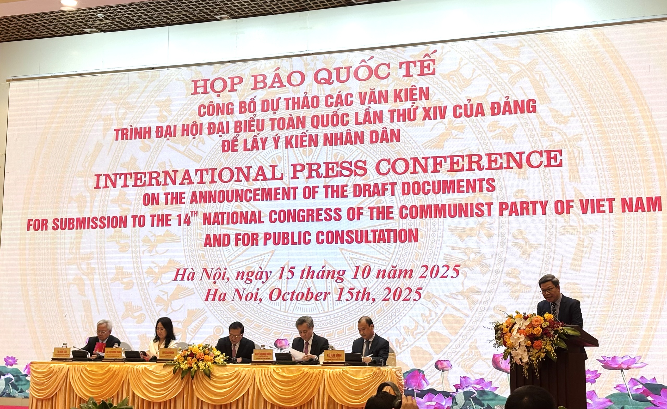 Chiều 15-10, Ban Tuyên giáo và Dân vận Trung ương tổ chức họp báo quốc tế công bố dự thảo các văn kiện trình Đại hội Đại biểu toàn quốc lần thứ XIV của Đảng để lấy ý kiến Nhân dân.