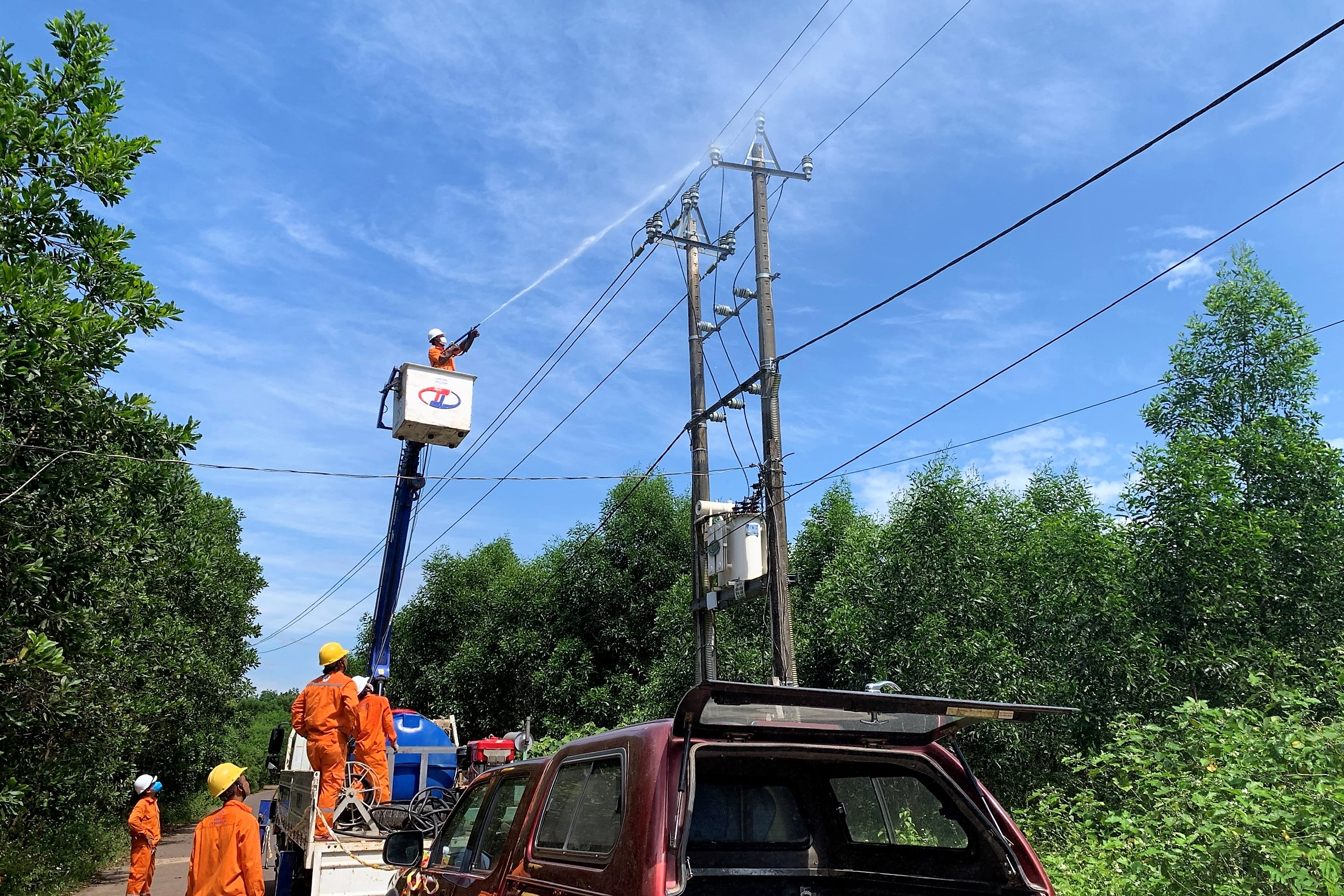 Tăng cường thực hiện vệ sinh trạm biến áp bằng nước áp lực cao khi đang mang điện (công nghệ hotline), góp phần nâng cao độ tin cậy cung cấp điện
