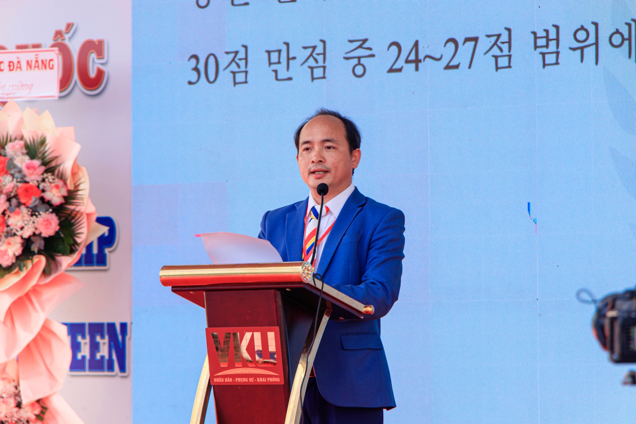 PGS.TS. Huỳnh Công Pháp - Hiệu trưởng VKU, Trưởng Ban Tổ chức Kỳ thi phát biểu tại lễ khai mạc. Ảnh VKU