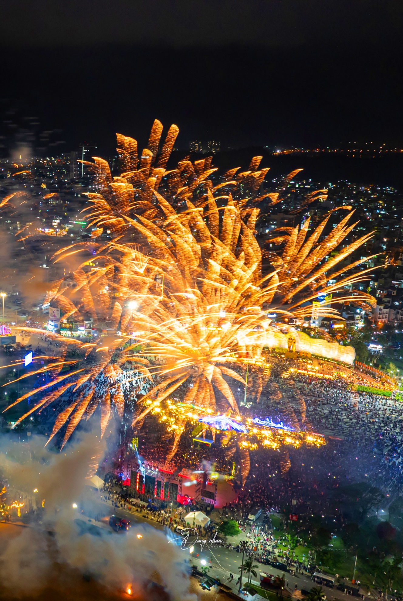Pháo hoa bừng sáng rực rỡ trong đêm giao thừa mừng đón Xuân Bính Ngọ 2026 ở phố biển Quy Nhơn. Ảnh: Nguyễn Phan Dũng Nhân.