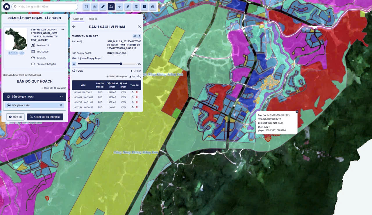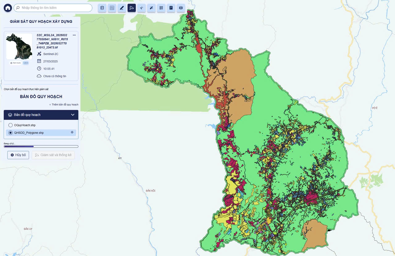 Bên cạnh đó, sản phẩm áp dụng các công nghệ mới và hiện đại như Công nghệ ảnh viễn thám, ảnh vệ tinh độ phân giải cao, siêu cao, ảnh từ UAV, Drone kết hợp với Trí tuệ nhân tạo không gian địa lý (GeoAI) để xây dựng các mô hình, thuật toán gồm mô hình GeoAI giúp tăng độ phân giải ảnh viễn thám từ độ phân giải trung bình (10m) lên cao (2.5m); mô hình GeoAI giải đoán, giám sát biến động hiện trạng sử dụng đất; mô hình GeoAI phát hiện, giám sát công trình, tài sản trên đất, giám sát xây dựng trái phép.