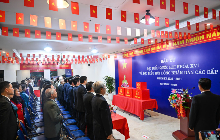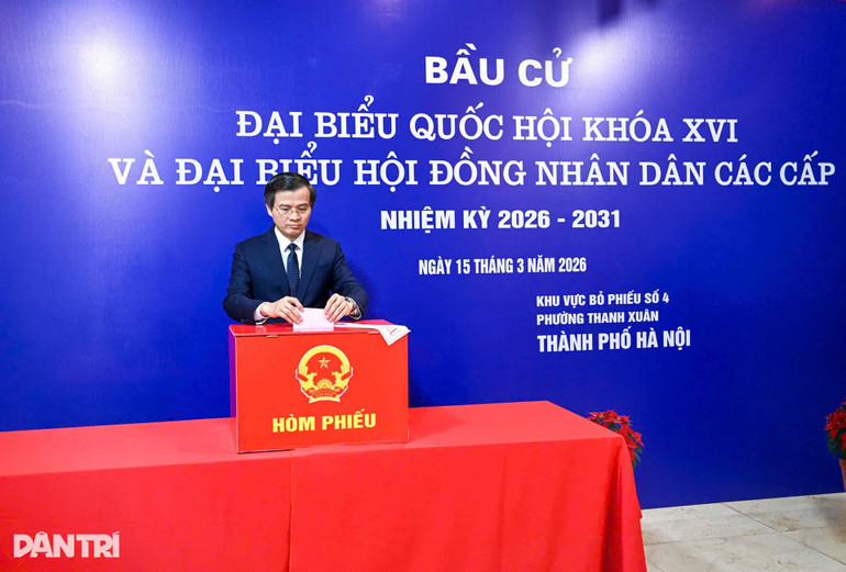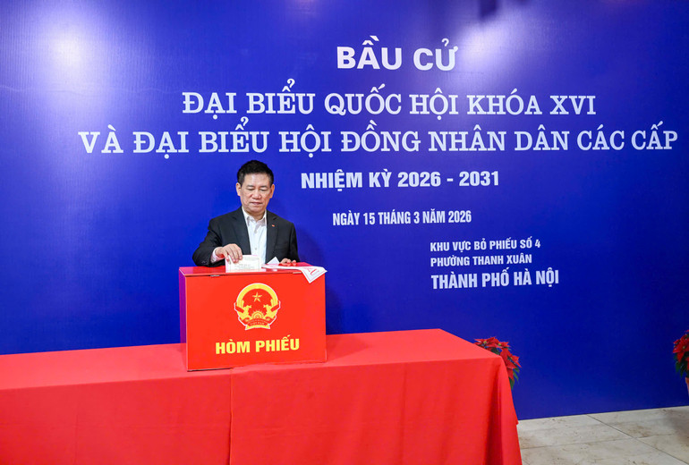 Sáng 15/3, đồng chí Đoàn Minh Huấn, Ủy viên Bộ Chính trị, Giám đốc Học viện Chính trị quốc gia Hồ Chí Minh, Phó Chủ tịch Thường trực Hội đồng Lý luận Trung ương cùng 2.163 cử tri bỏ phiếu bầu đại biểu Quốc hội khóa XVI và đại biểu Hội đồng nhân dân các cấp nhiệm kỳ 2026-2031 tại Khu vực bỏ phiếu số 4, phường Thanh Xuân (Hà Nội).