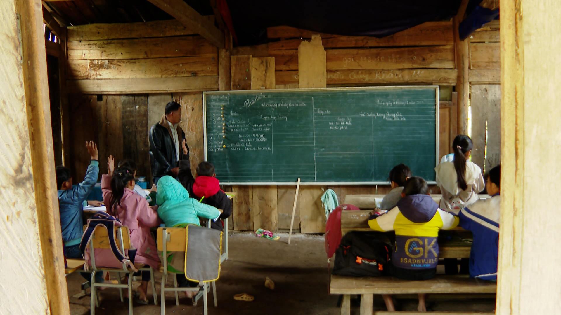 Lớp học ghép trong căn phòng ván ở điểm trường vùng cao.