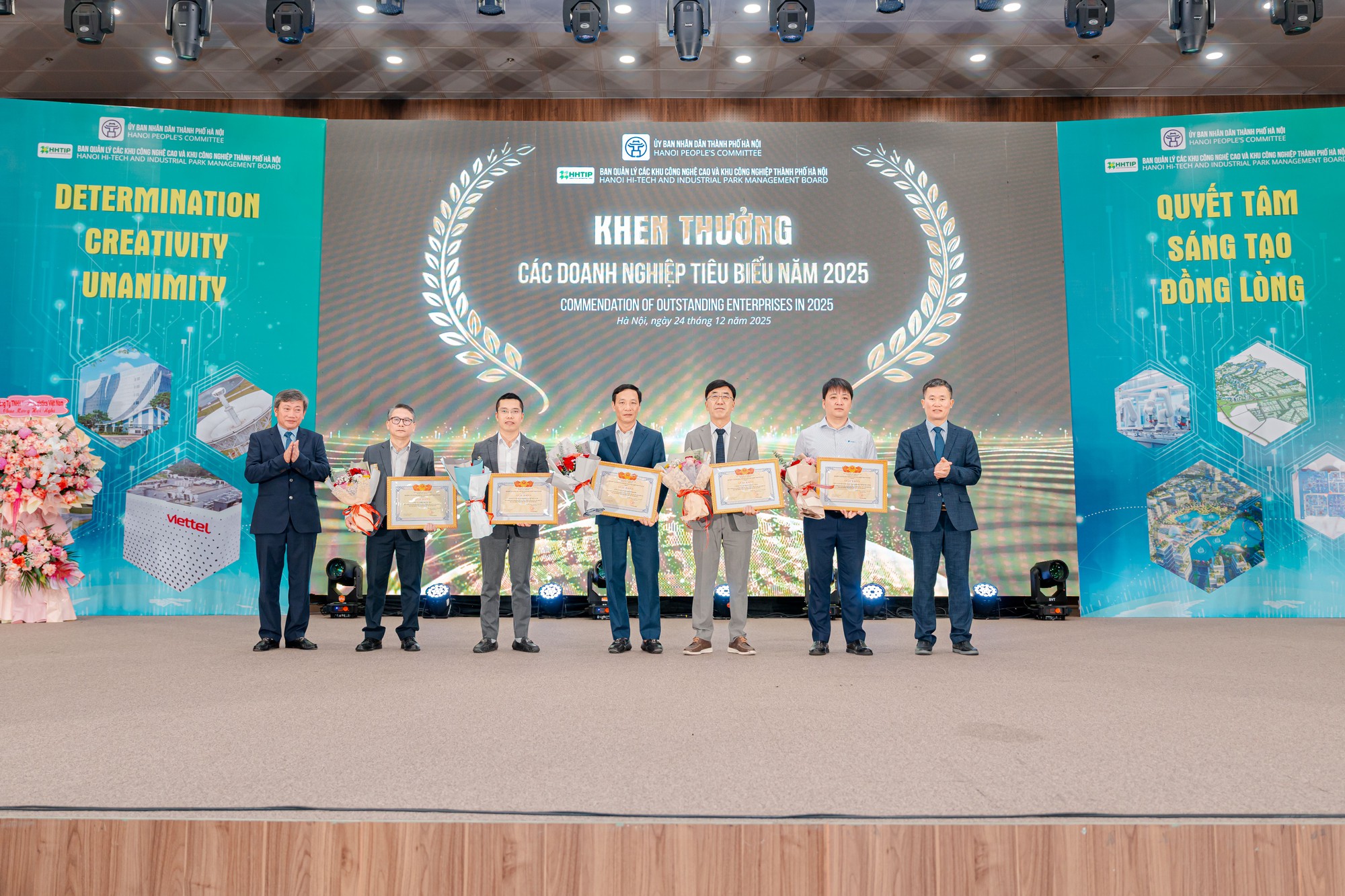 Ban Quản lý các Khu công nghệ cao và Khu công nghiệp TP. Hà Nội khen thưởng các doanh nghiệp tiêu biểu năm 2025. Ảnh: VGP/Cảnh Hoàng