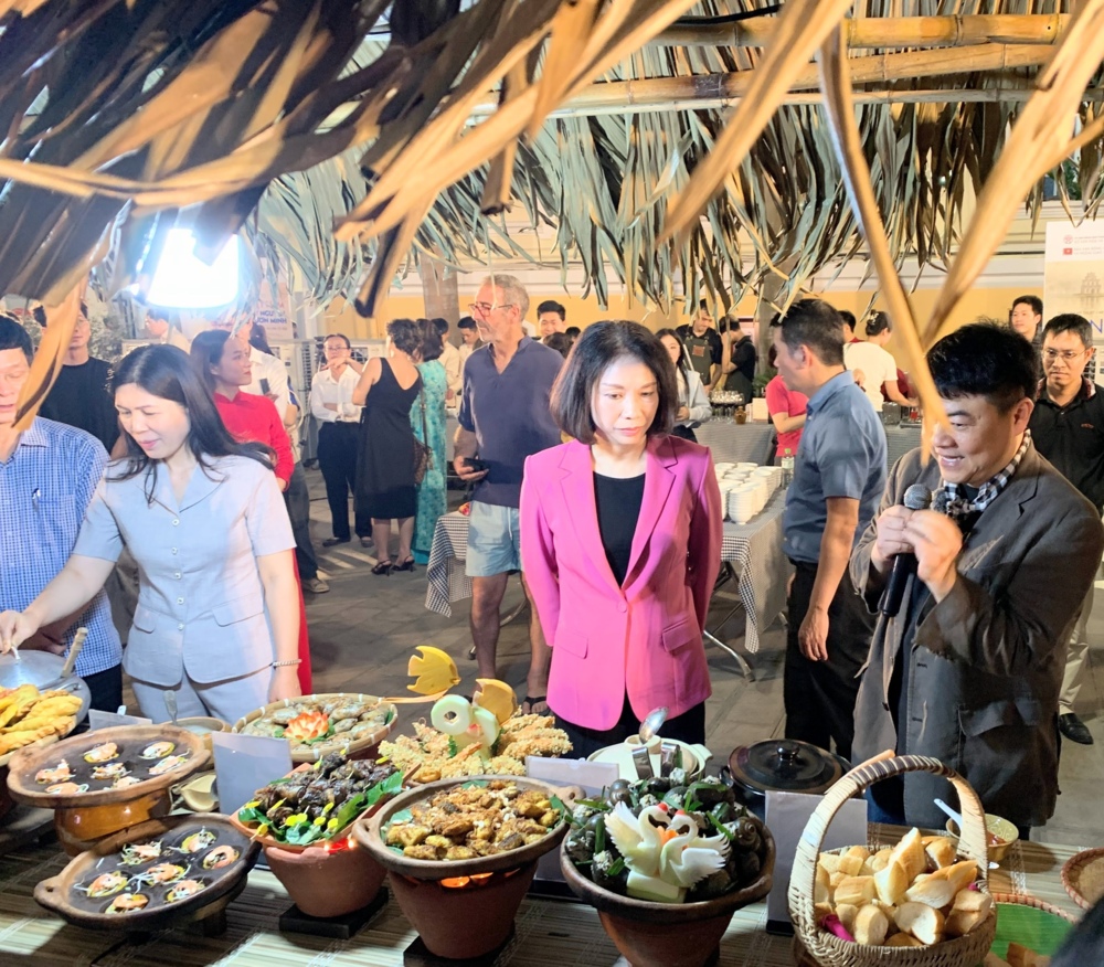 Bà Vũ Thu Hà Phó Chủ tịch UBND TP Hà Nội và các vị đại biểu tham gia ẩm thực tại lễ ra mắt Cổng thông tin an toàn thực phẩm.