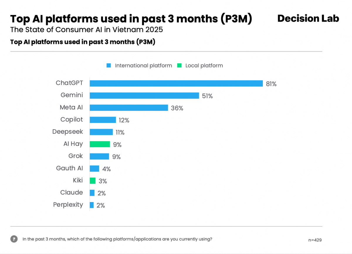 Top 10 nền tảng AI được sử dụng nhiều tại Việt Nam 2025. Ảnh: Decision Lab.