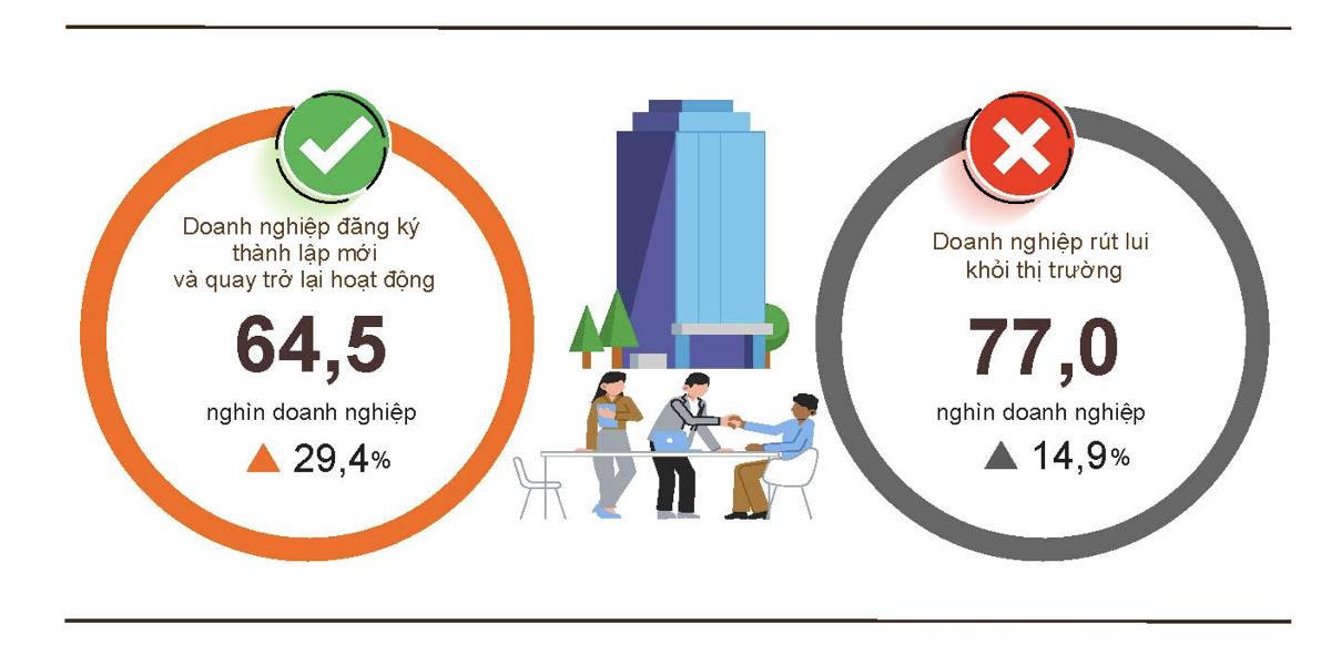 Tuy nhiên, số doanh nghiệp rút lui khỏi thị trường vẫn ở mức cao. Theo thống kê, hai tháng đầu năm 2026 có khoảng 77 nghìn doanh nghiệp rút lui khỏi thị trường, tăng 14,9% so với cùng kỳ năm trước.