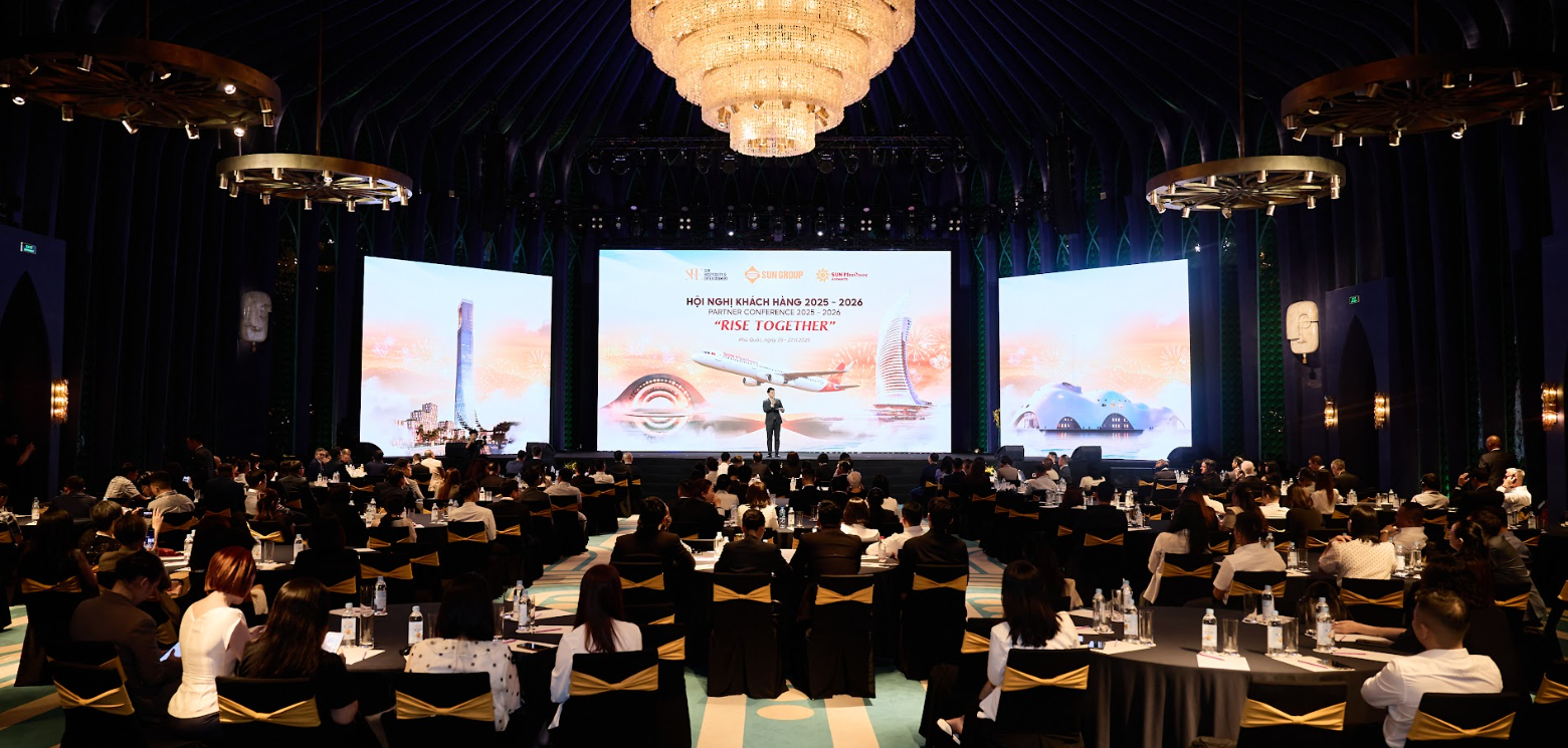 Ngày 26/11, Hội nghị Khách hàng 2025 - 2026 của Sun Hospitality & Entertainment (S.H.E) và Sun PhuQuoc Airways (SPA) – thành viên Tập đoàn Sun Group – đã diễn ra tại Phú Quốc, với sự tham dự của hơn 200 đối tác lớn. Mang chủ đề “Rise Together”, sự kiện không chỉ tổng kết bức tranh tăng trưởng ấn tượng năm 2025 của các điểm đến trên toàn quốc, mà còn là dịp đặc biệt để Sun Group công bố kế hoạch Du lịch - Hàng không năm 2026, với việc đặt Phú Quốc vào vị trí trung tâm trong tầm nhìn hướng đến Diễn đàn Hợp tác Kinh tế châu Á - Thái Bình Dương APEC 2027.