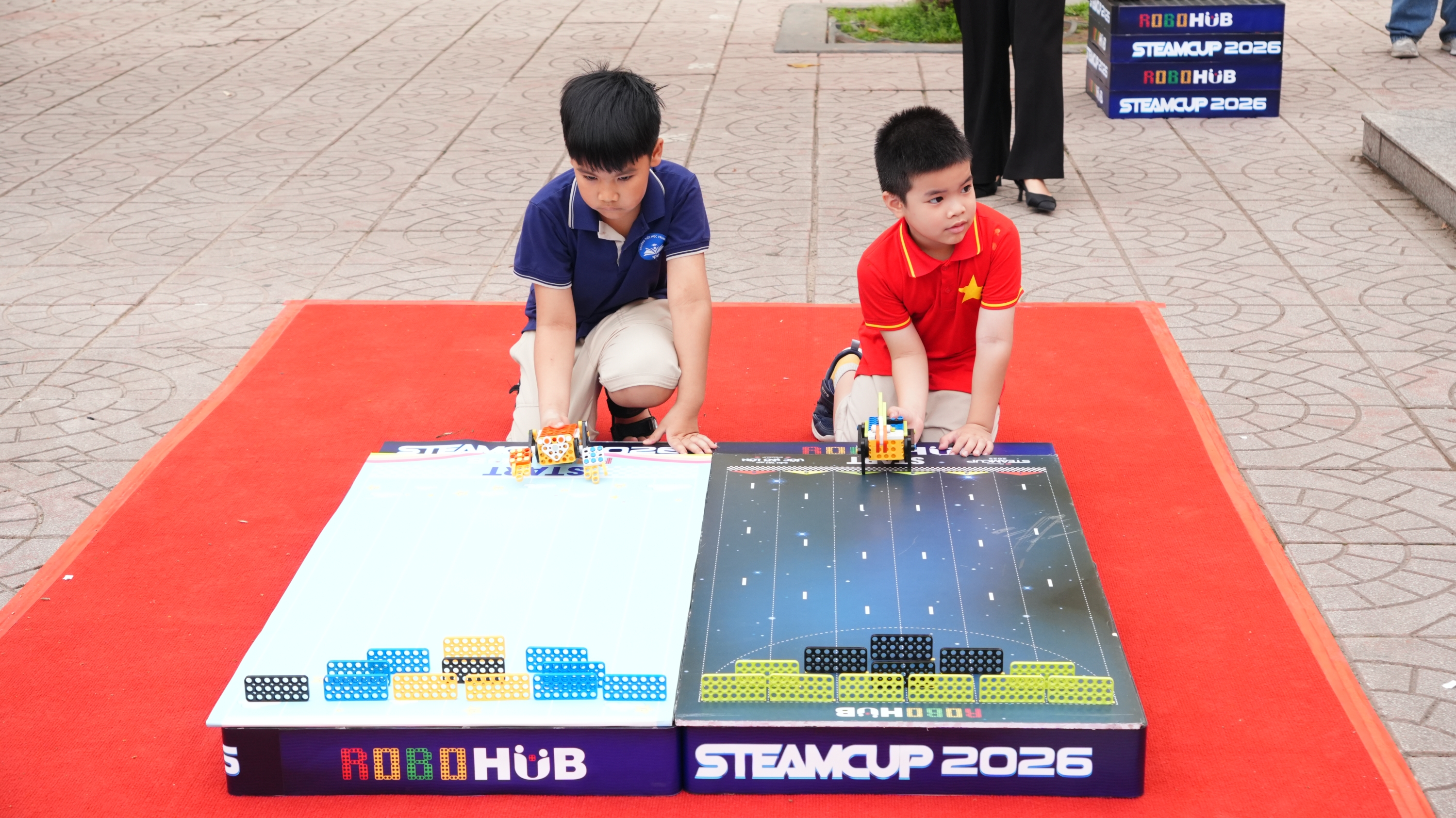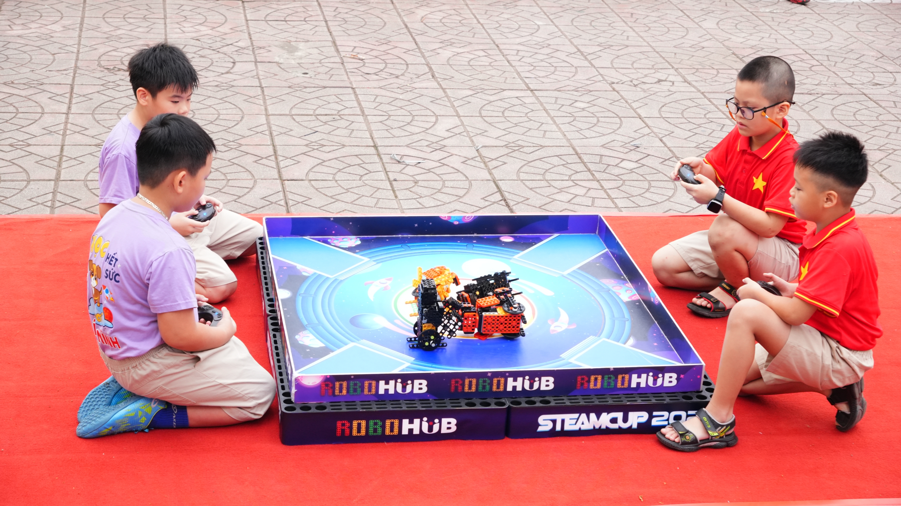 Bên cạnh các hoạt động thi đấu, học sinh còn được trải nghiệm công nghệ AI thông qua phần mềm FLOAINO, giúp các em tiếp cận lập trình theo tư duy trực quan, dễ hiểu. Các gian trưng bày sản phẩm STEM của các khối lớp cũng thu hút sự quan tâm của phụ huynh và học sinh với nhiều mô hình sáng tạo.