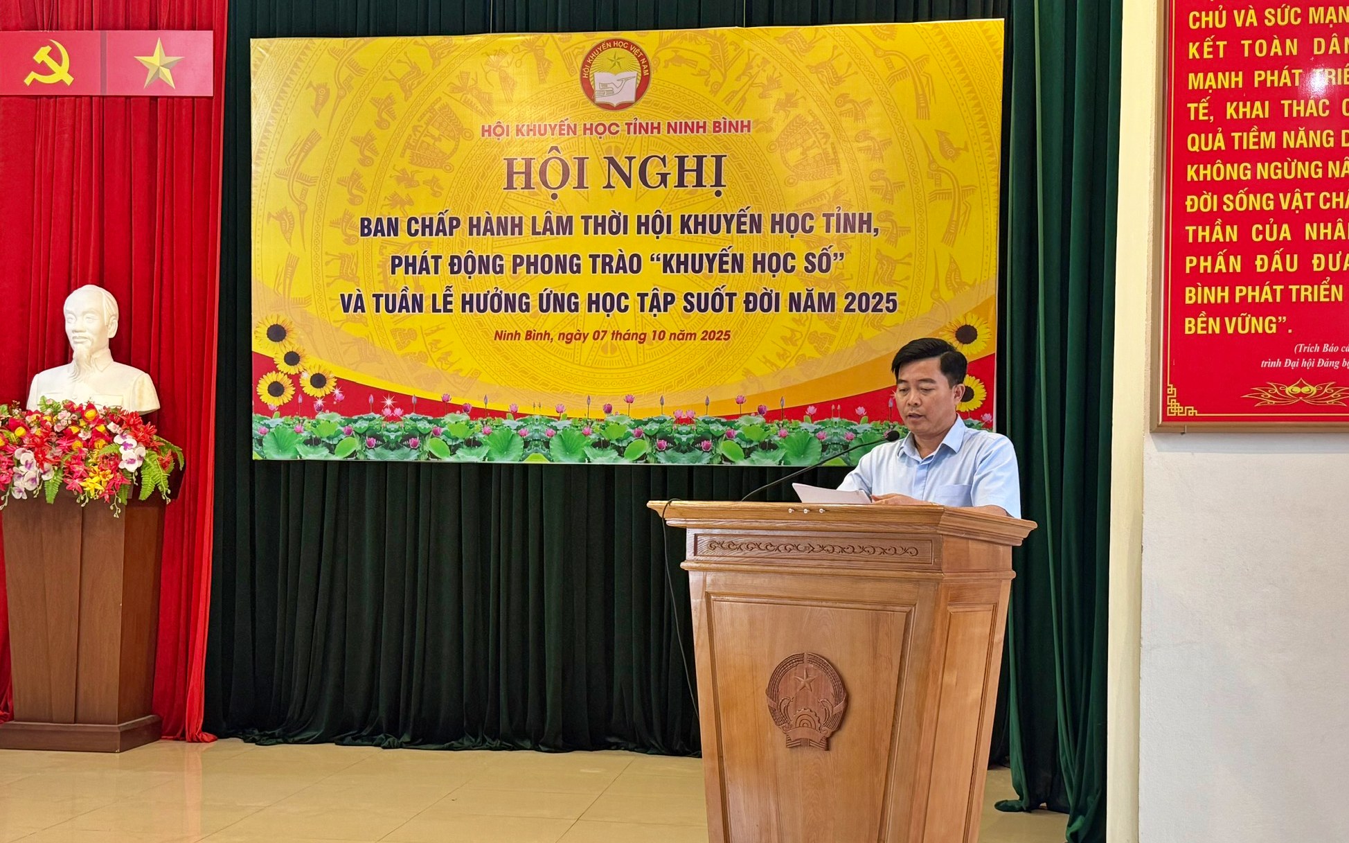 Tại hội nghị, ông Đỗ Văn Sáng – Chủ tịch Hội Khuyến học tỉnh Ninh Bình – phát động phong trào "Khuyến học số", đồng thời công bố chương trình hành động "Tỉnh Ninh Bình hướng tới học suốt đời năm 2025".