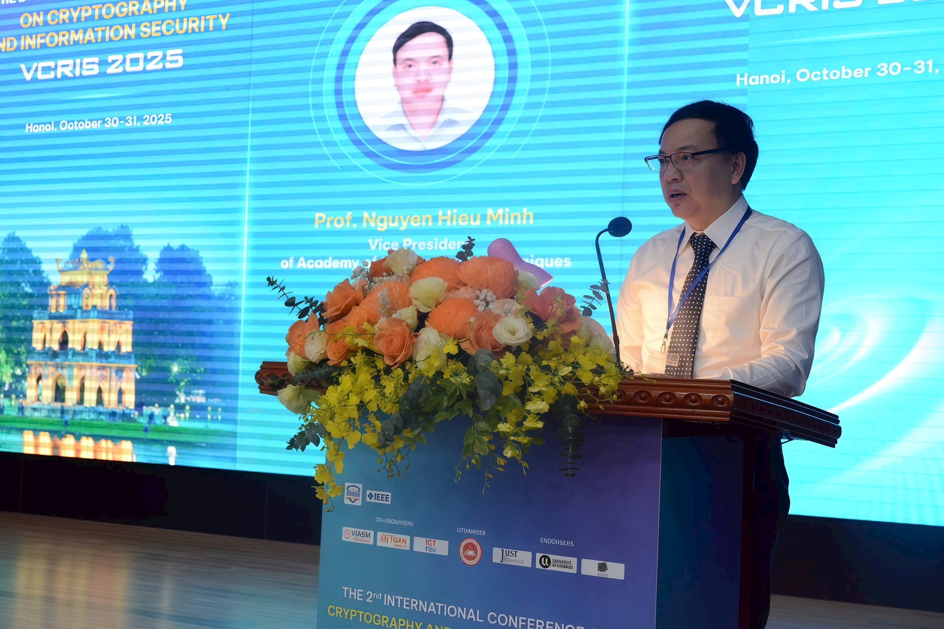 Phát biểu khai mạc Hội thảo, GS.TS Nguyễn Hiếu Minh, Phó Giám đốc Học viện Kỹ thuật mật mã, Trưởng ban Tổ chức Hội thảo nhấn mạnh: “VCRIS không chỉ là cầu nối tri thức giữa các nhà nghiên cứu trong nước và quốc tế, mà còn là diễn đàn để Việt Nam thể hiện cam kết phát triển ATTT như một nền tảng của chủ quyền số và phát triển bền vững”.