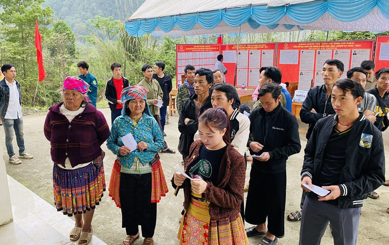 Ngay từ sáng sớm, rất nhiều cử tri bản người Mông bản Mỹ Á, xã Thu Cúc, tỉnh Phú Thọ đã nô nức đi bầu cử.