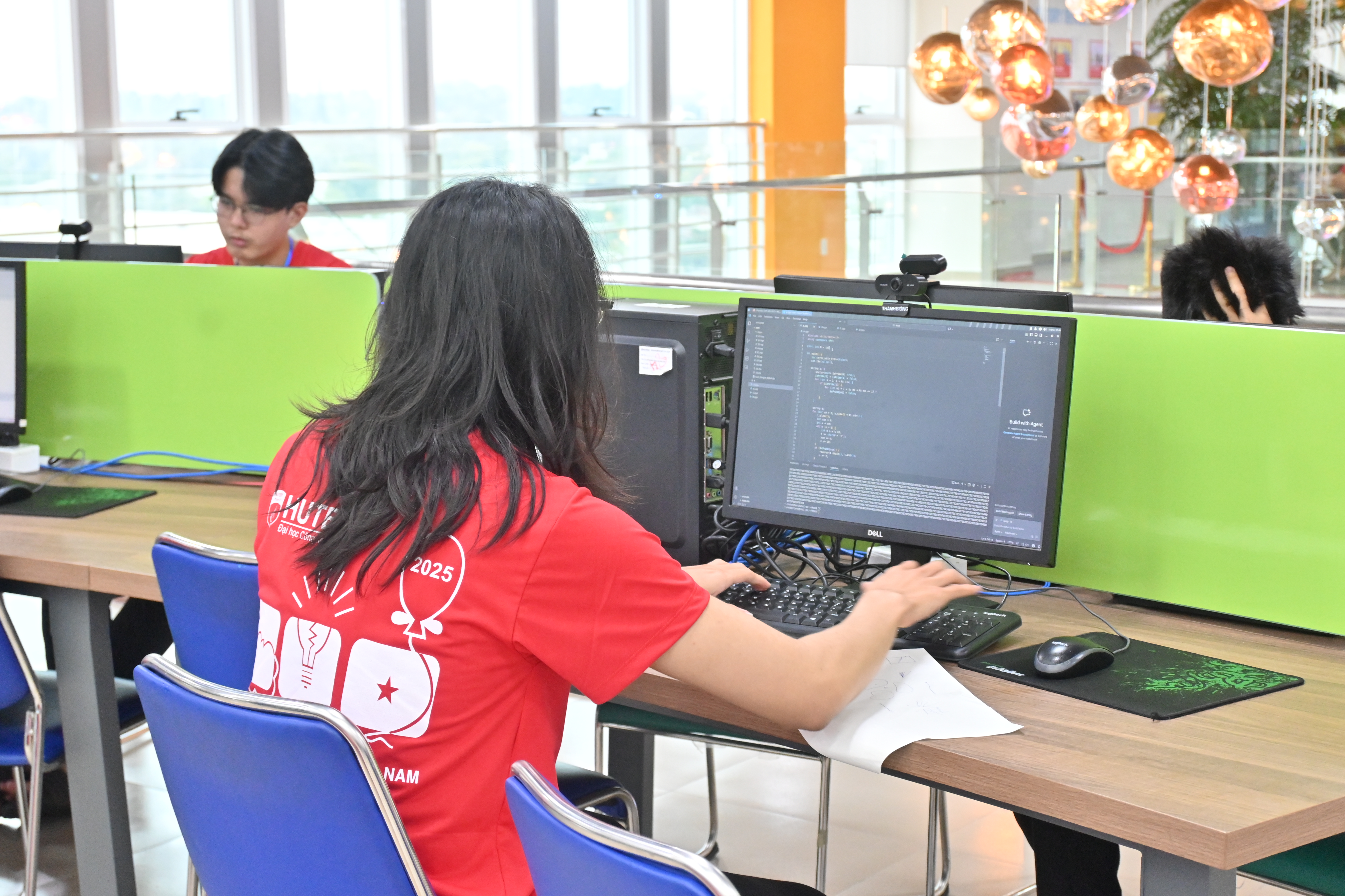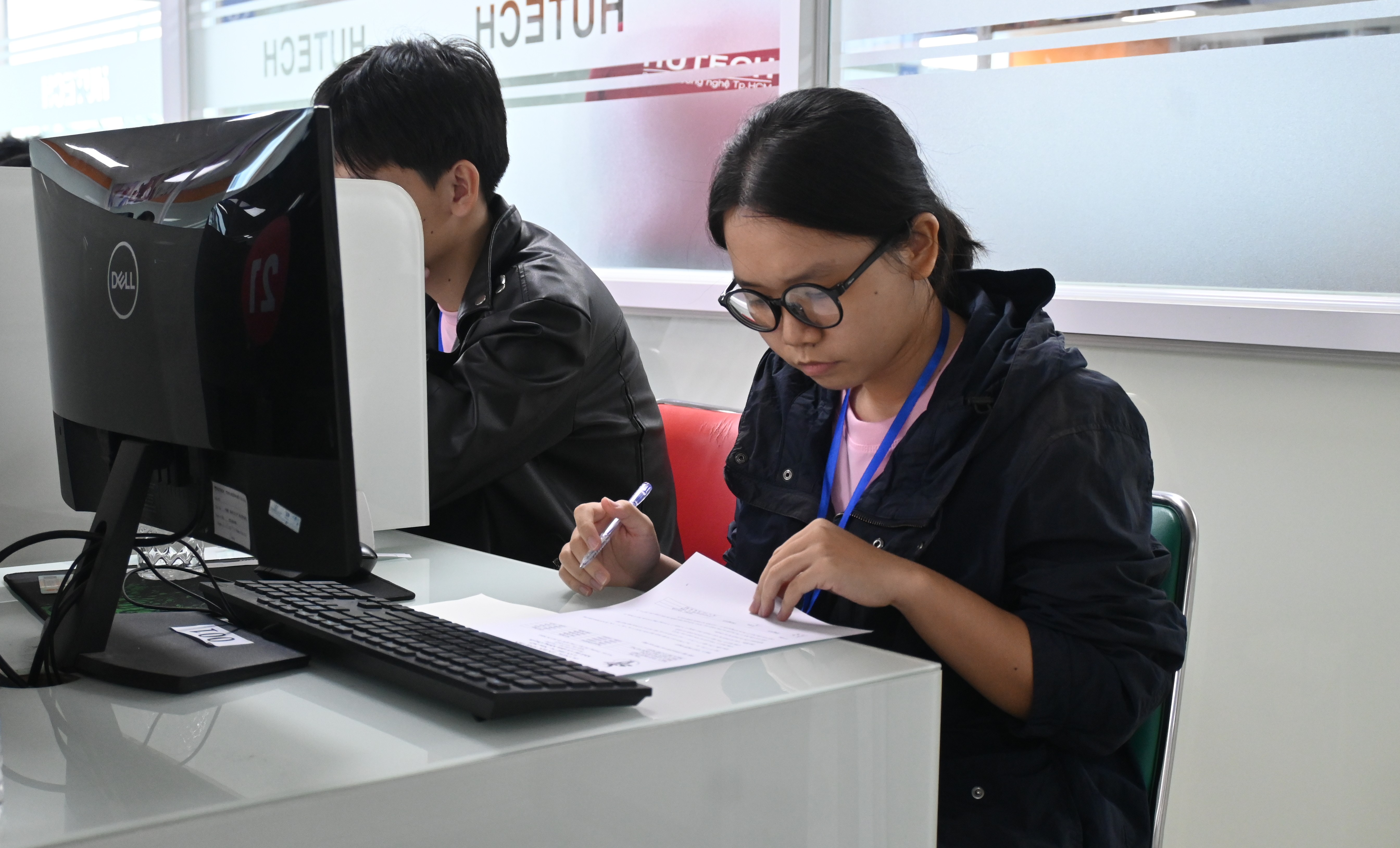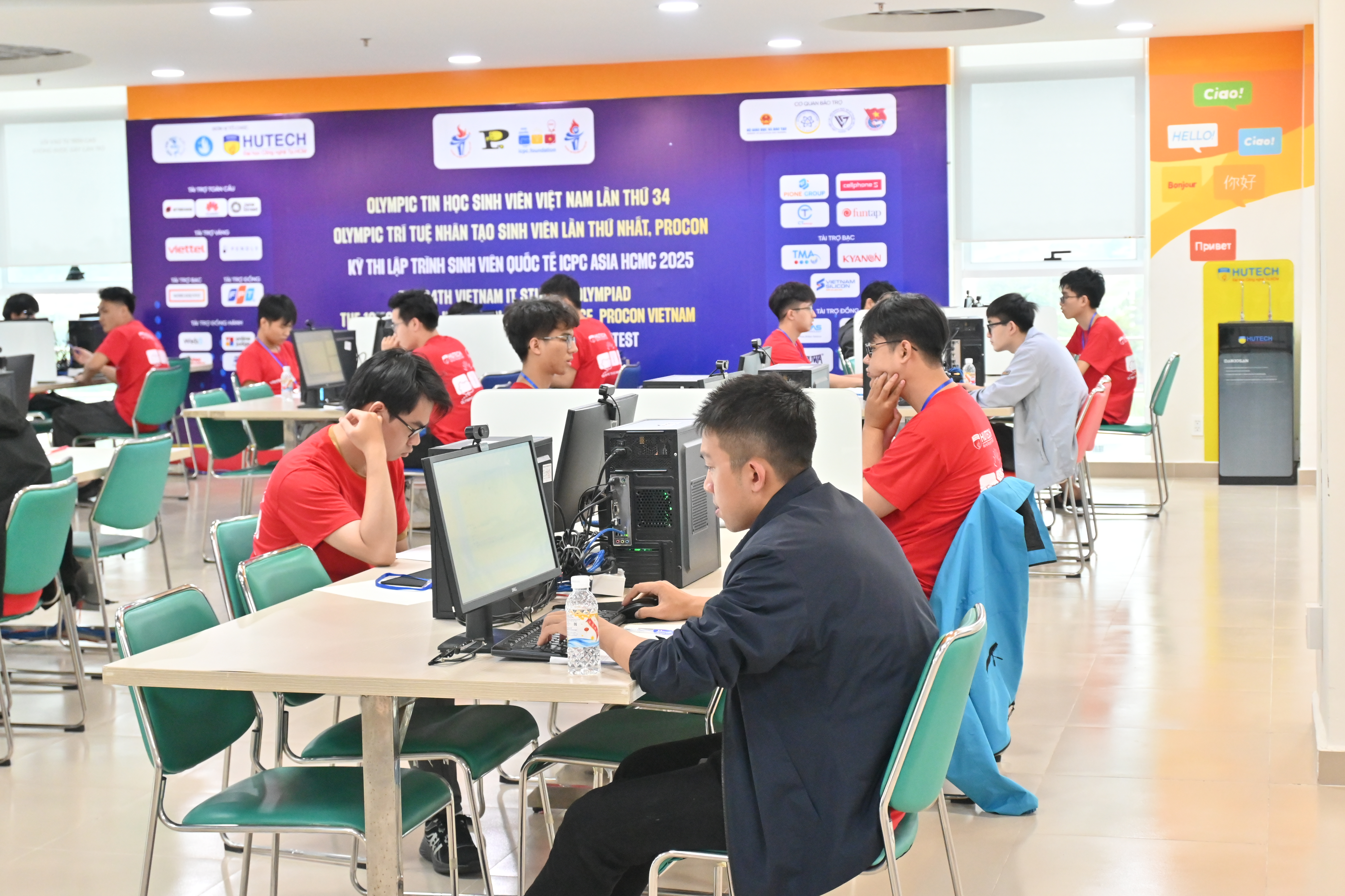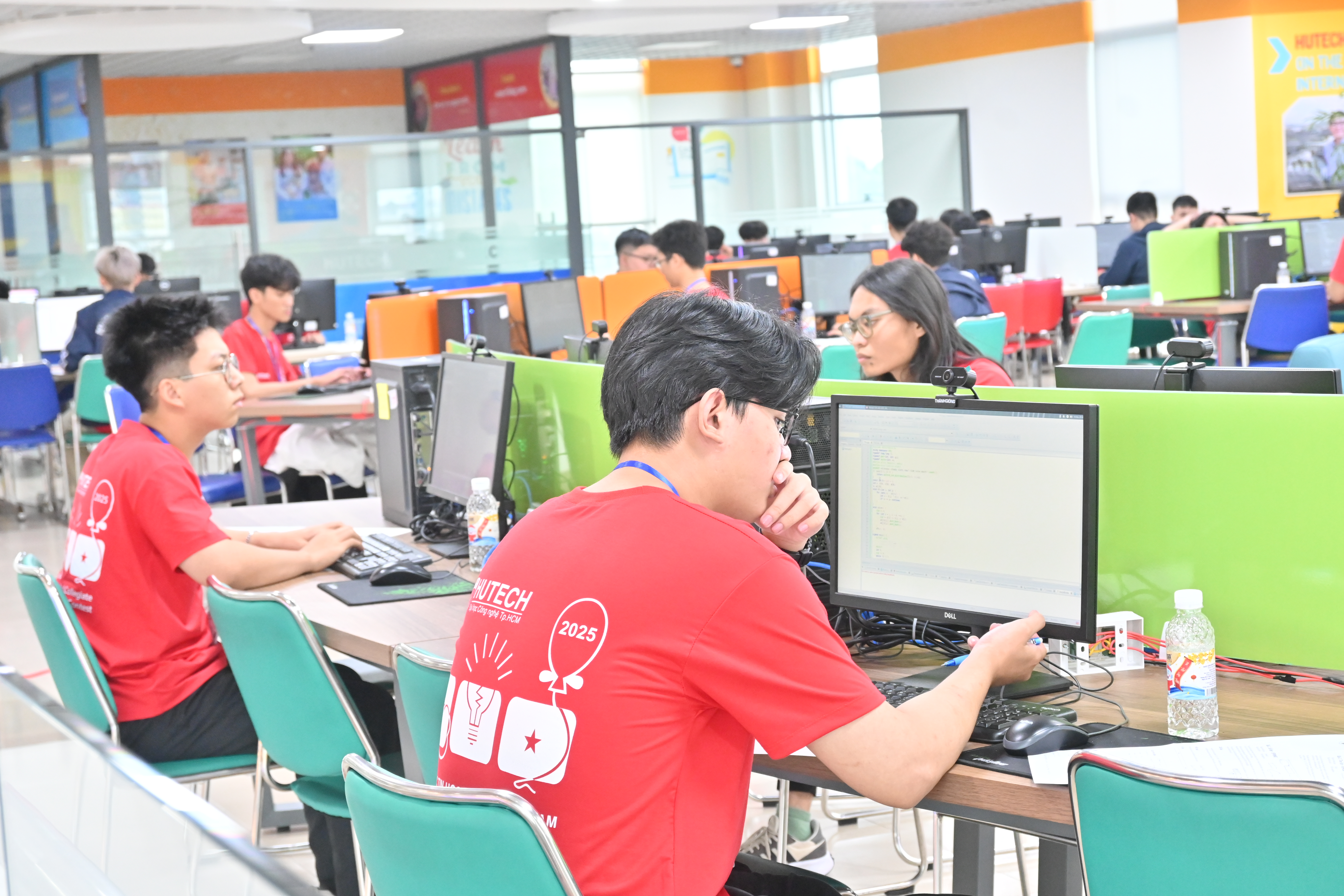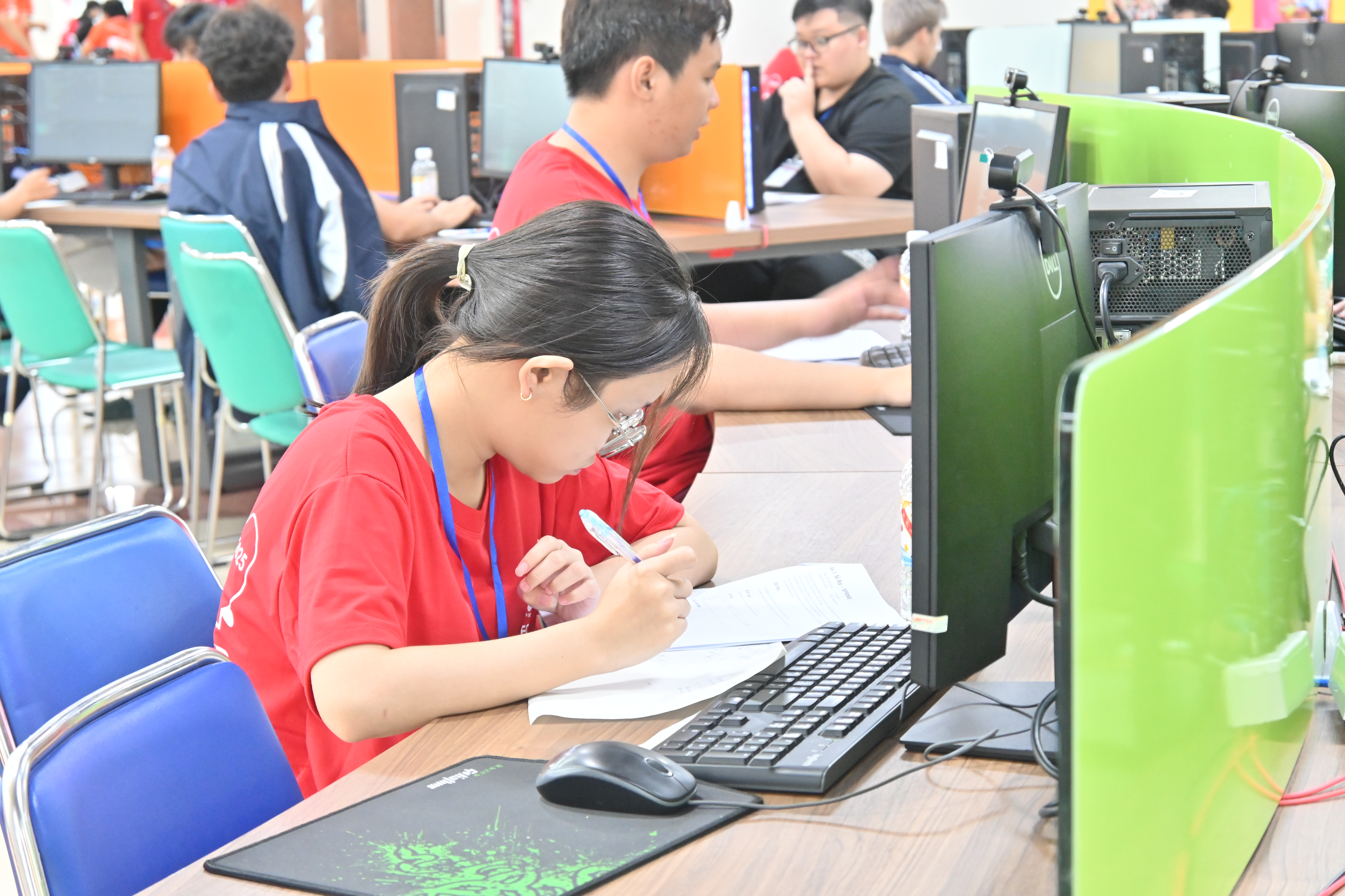 Đúng 14h00, đề thi được phát ra. Các thí sinh nghiêm túc bước vào làm bài, tập trung tối đa để chinh phục những bài toán thuật toán và kỹ thuật đòi hỏi khả năng tư duy, phân tích và bản lĩnh thi đấu.