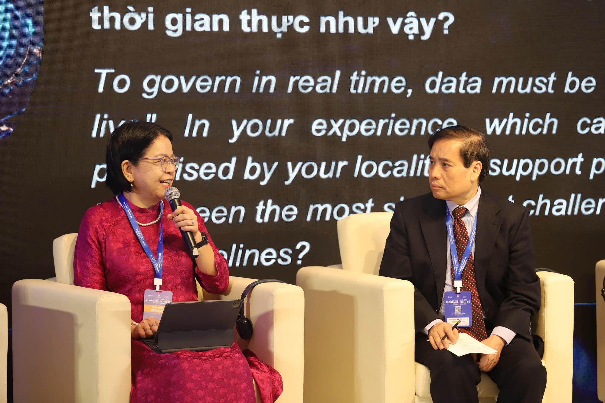 Thảo luận về chính quyền số, bà Võ Thị Trung Trinh, Giám đốc Trung tâm Chuyển đổi số TPHCM, cho biết Thành phố đã ban hành Chiến lược quản trị dữ liệu từ đầu năm 2023, trong đó xác định 3 nhóm dữ liệu trọng tâm gồm dữ liệu người dân, dữ liệu doanh nghiệp và dữ liệu quản lý đô thị. Đây là nền tảng để triển khai chuyển đổi số và phát triển đô thị thông minh. Tuy nhiên, quá trình thực thi đang gặp nhiều thách thức, nổi bật là sự thiếu liên thông giữa hệ thống Trung ương - địa phương và giữa các sở ngành, khiến dữ liệu bị phân mảnh, khó tích hợp. Việc chia sẻ dữ liệu dù đã có cơ chế nhưng vẫn còn hạn chế, chưa hình thành được bộ dữ liệu dùng chung phục vụ điều hành.