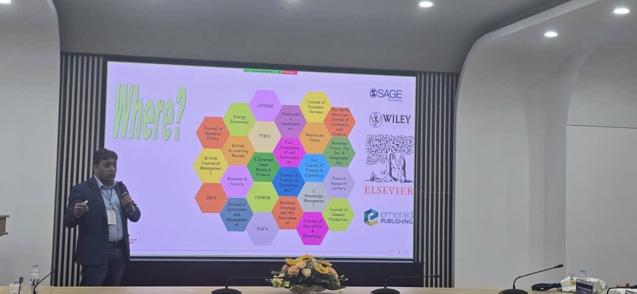 Bên cạnh đó là những chia sẻ của các diễn giả: GS.TS. Nazim Hussain - Đại học Groningen (Hà Lan) về hành vi “tô vẽ xanh” và bằng chứng từ thị trường trái phiếu doanh nghiệp; GS.TS. Kanitsorn Terdpaopong - Đại học Rangsit (Thái Lan) về nghịch lý về phát triển bền vững - góc nhìn hiệu quả về thể chế, môi trường - xã hội - quản trị; GS.TS. Santosh Mehrotra -Đại học Bath (Anh) về tiếp cận công nghệ và đổi mới sáng tạo - chiến lược của các quốc gia Trung Quốc, Ấn Độ và Việt Nam...