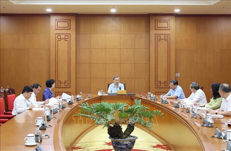 Thông báo nêu: Ngày 3/10/2025, tại Trụ sở Trung ương Đảng, đồng chí Tô Lâm, Tổng Bí thư Ban Chấp hành Trung ương Đảng chủ trì buổi làm việc với Bộ Nội vụ, Bộ Nông nghiệp và Môi trường về hệ thống đơn vị sự nghiệp công lập thực hiện nhiệm vụ khuyến nông ở địa phương khi vận hành mô hình chính quyền địa phương 2 cấp.