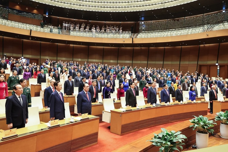 Đặc biệt, nhiệm kỳ Quốc hội khóa XV đã sửa đổi, bổ sung một số điều của Hiến pháp, Quốc hội đã chủ động đổi mới tư duy trong xây dựng luật, tích cực, kịp thời thể chế hóa chủ trương của Đảng thành pháp luật, khẳng định vai trò tiên phong đi trước một bước về thể chế; đẩy mạnh ứng dụng công nghệ số, chuyển đổi số, trí tuệ nhân tạo; lần đầu tiên, tổ chức thành công 2 diễn đàn về pháp luật và giám sát. Quốc hội đã ban hành nhiều đạo luật quan trọng về hoàn thiện Nhà nước pháp quyền xã hội chủ nghĩa; tinh gọn tổ chức bộ máy, sắp xếp lại các đơn vị hành chính; phòng chống tham nhũng, lãng phí, tiêu cực; nhất là trên các lĩnh vực: Tài chính - ngân sách, văn hóa - xã hội, y tế - giáo dục, đảm bảo an sinh xã hội; tài nguyên - môi trường; khoa học - công nghệ; đổi mới sáng tạo, chuyển đổi số; quốc phòng - an ninh, đối ngoại, hội nhập quốc tế…, tạo nền tảng quan trọng để đất nước ta bước vào kỷ nguyên phát triển mới.
