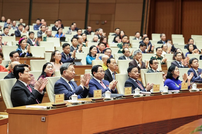 "Nhiệm vụ, yêu cầu của đất nước trong giai đoạn phát triển mới đòi hỏi toàn Đảng, toàn dân và toàn quân ta phát huy cao độ tinh thần yêu nước, khát vọng phát triển, sức mạnh của nhân dân, của khối đại đoàn kết toàn dân tộc; đổi mới mạnh mẽ tư duy; thực hiện đồng bộ, hiệu quả các quyết sách chiến lược. Quốc hội, các cơ quan của Quốc hội, các vị đại biểu Quốc hội cố gắng, nỗ lực, quyết tâm cao hơn nữa, dám nói, dám làm, dám chịu trách nhiệm vì nhân dân, vì đất nước, góp phần quan trọng để đất nước ta bước vào kỷ nguyên mới - kỷ nguyên vươn mình của dân tộc, vì một nước Việt Nam giàu mạnh, phồn vinh, văn minh, hạnh phúc", Chủ tịch Quốc hội Trần Thanh Mẫn phát biểu.