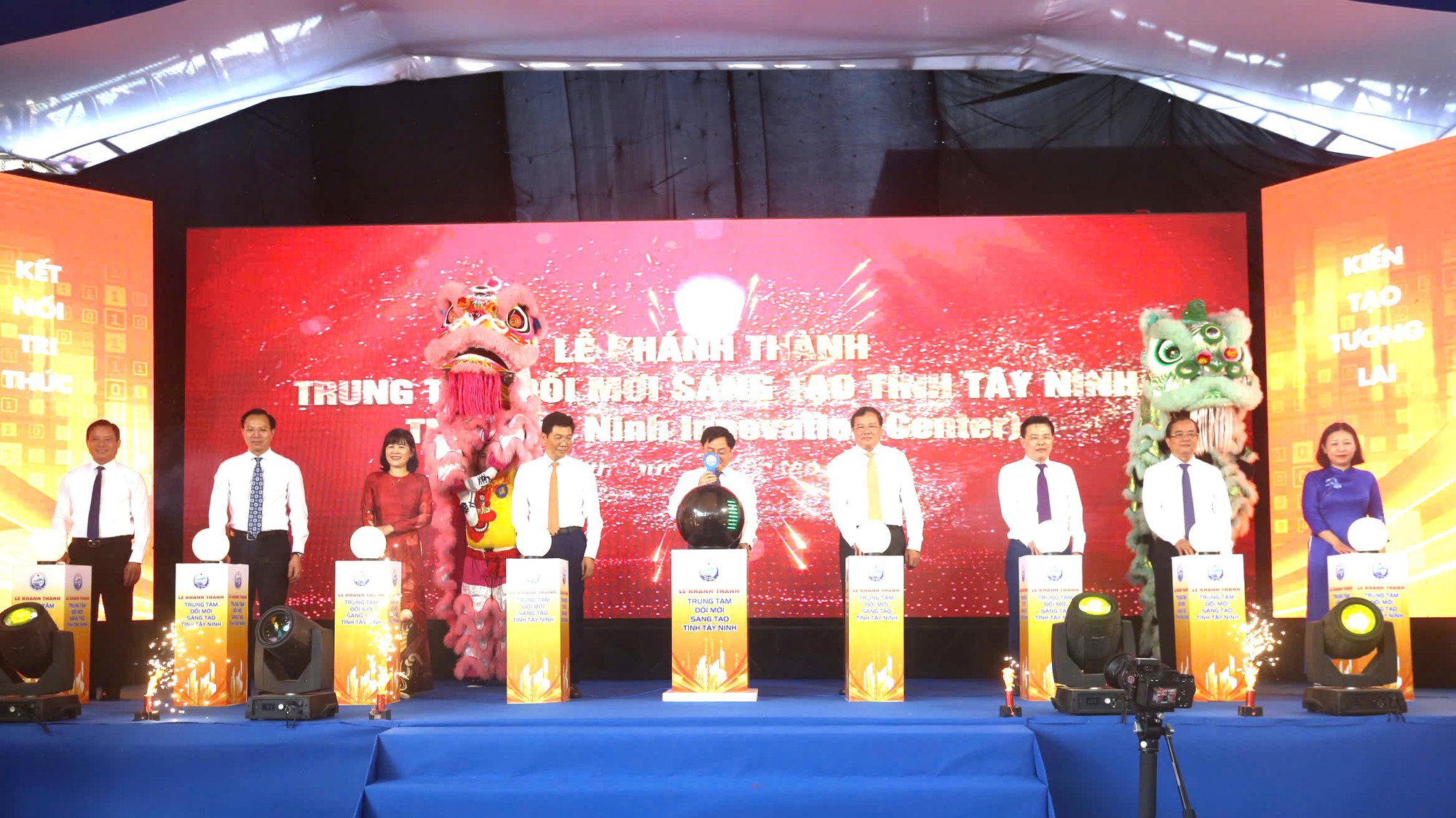 Các đại biểu thực hiện nghi thức khánh thành Trung tâm Đổi mới sáng tạo tỉnh Tây Ninh - Ảnh: VGP/LS